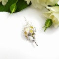 Broszka - Biedronka na gałązce biała