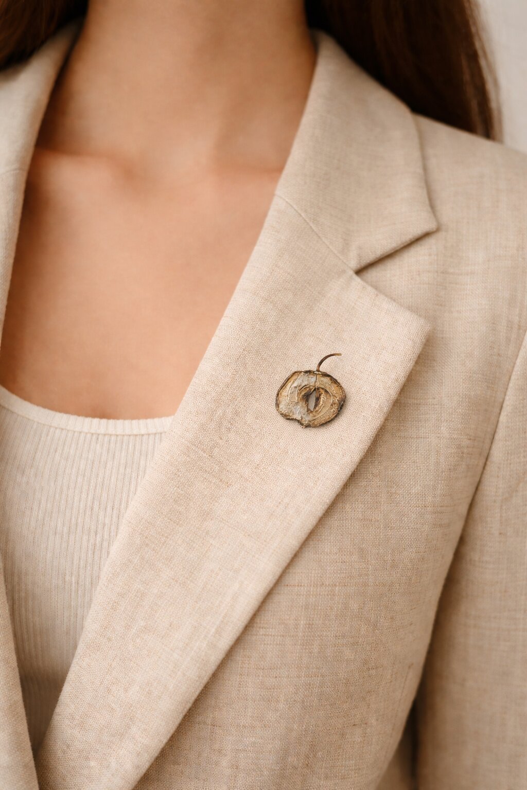 Urocza, misternie wykonana broszka ze srebra próby 925 przedstawiająca jabłuszko.