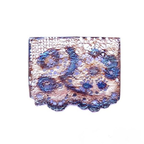 Zawieszka wykonana ze srebra przedstawiająca intrygujący wzór koronki.