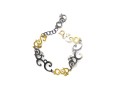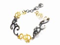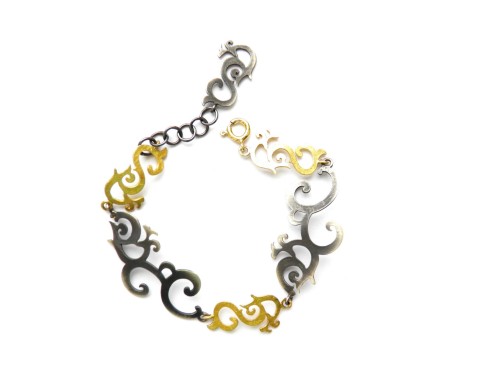 Urocza bransoletka srebrna składająca się z pięciu połączonych ze sobą elementów i zawieszonego na końcu charmsa. Dwa elementy zostały pozłocone, reszta bransoletki zoksydowana.