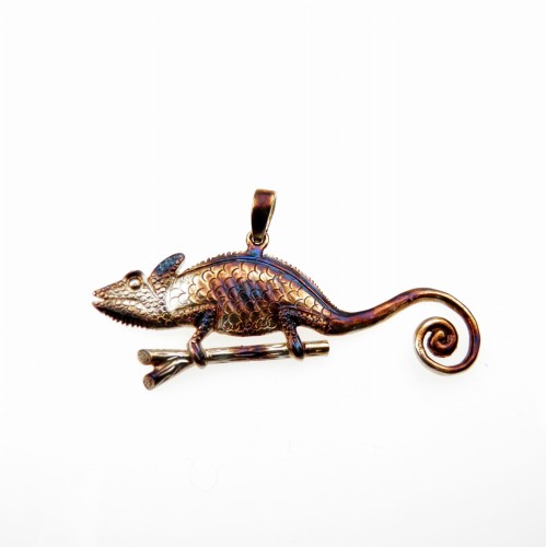 Wisiorek srebrny - Kameleon mały brązowy