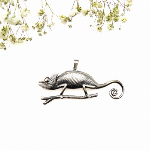 Wisiorek srebrny - Kameleon szary duży