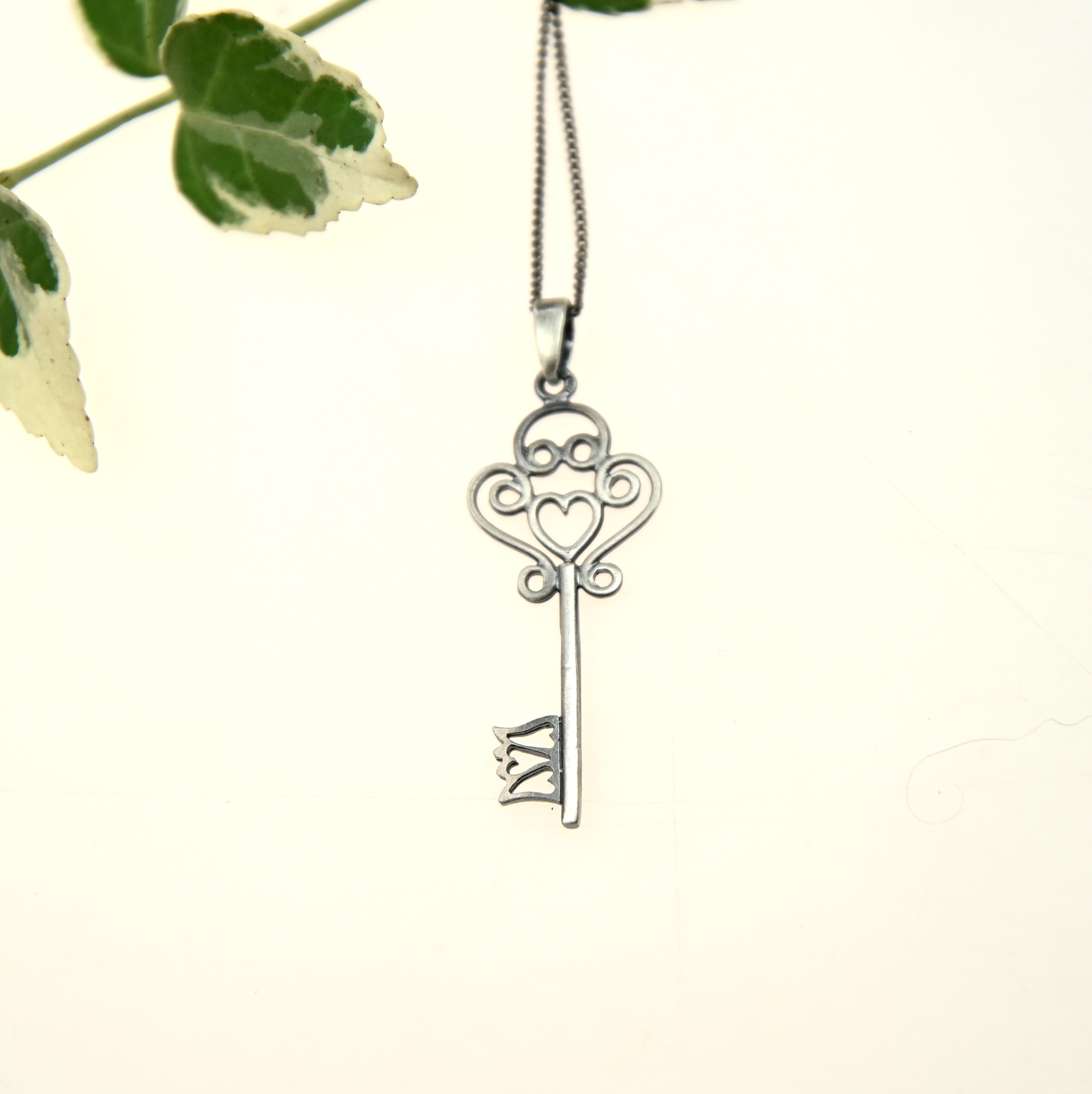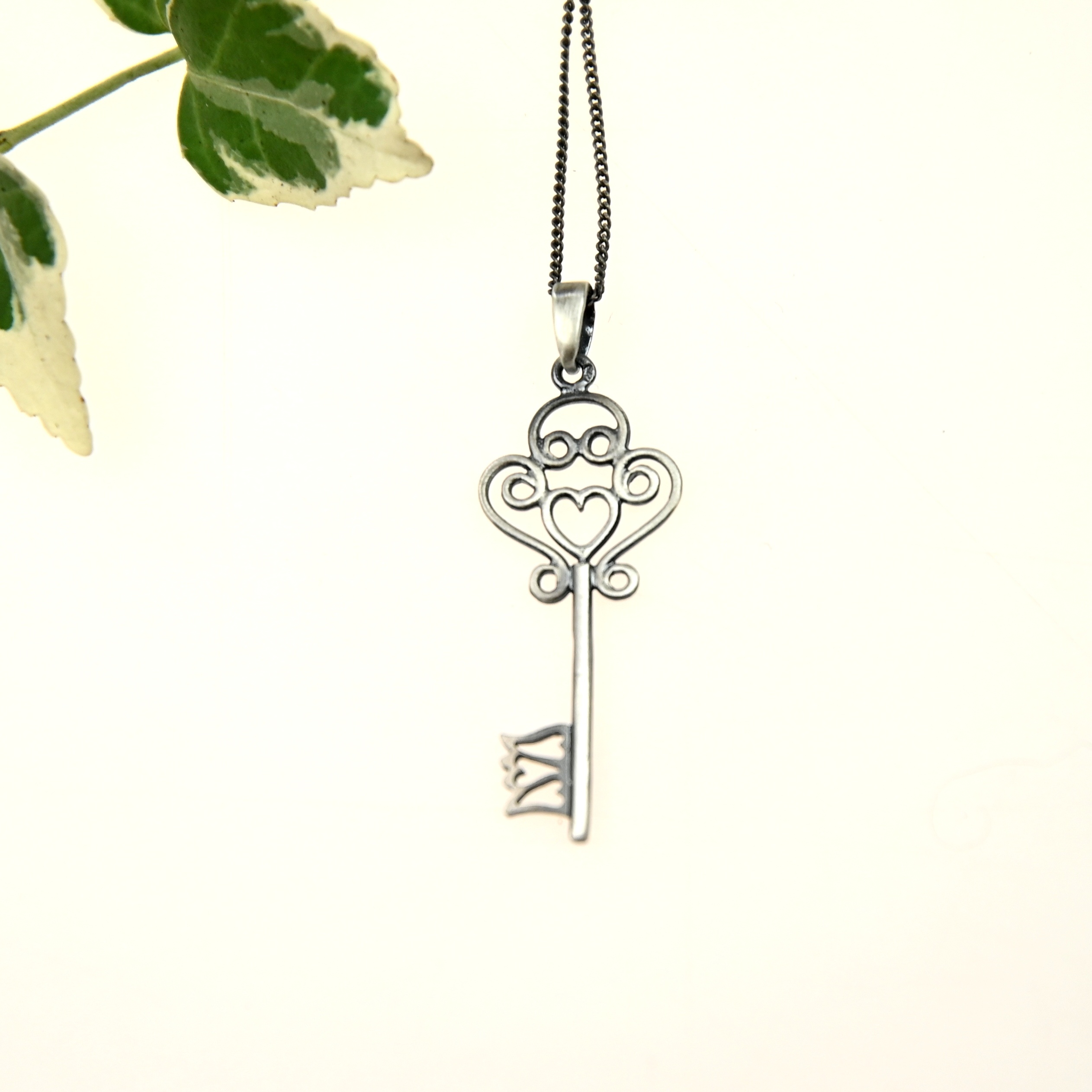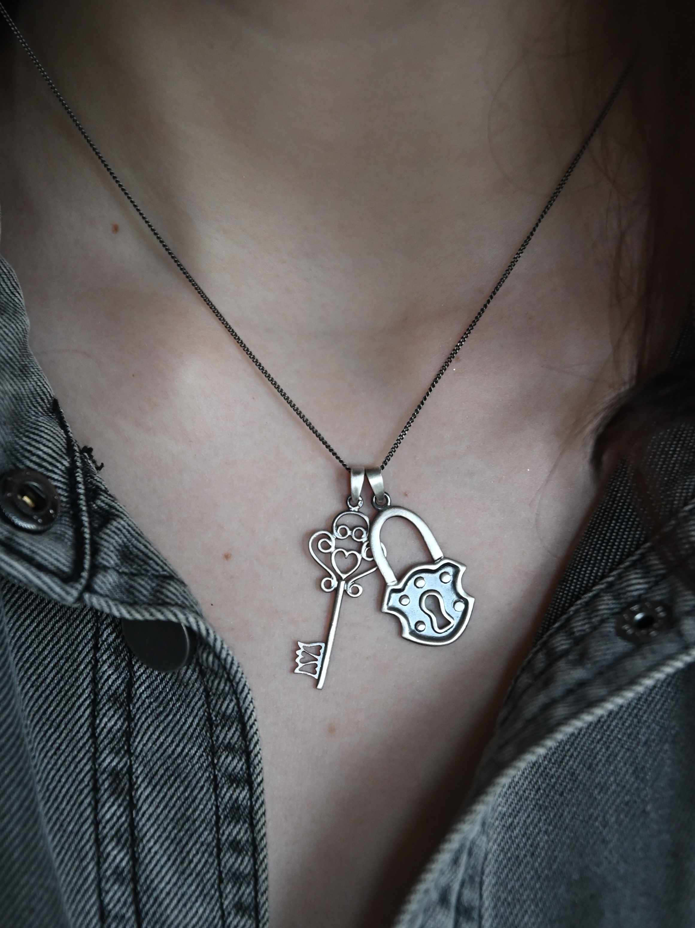 Motyw klucza od dawna symbolizuje tajemnice, zaufanie, bliskość oraz dostęp do tego, co ukryte i najważniejsze. Oksydowane wykończenie sprawia, że kluczyk wygląda jak mały przedmiot z dawnych czasów, osobisty talizman noszony blisko serca. Dzięki niewielkim rozmiarom wisiorek jest lekki i wygodny w noszeniu, pięknie dopełniając codzienne stylizacje oraz bardziej romantyczne, wieczorne zestawy.