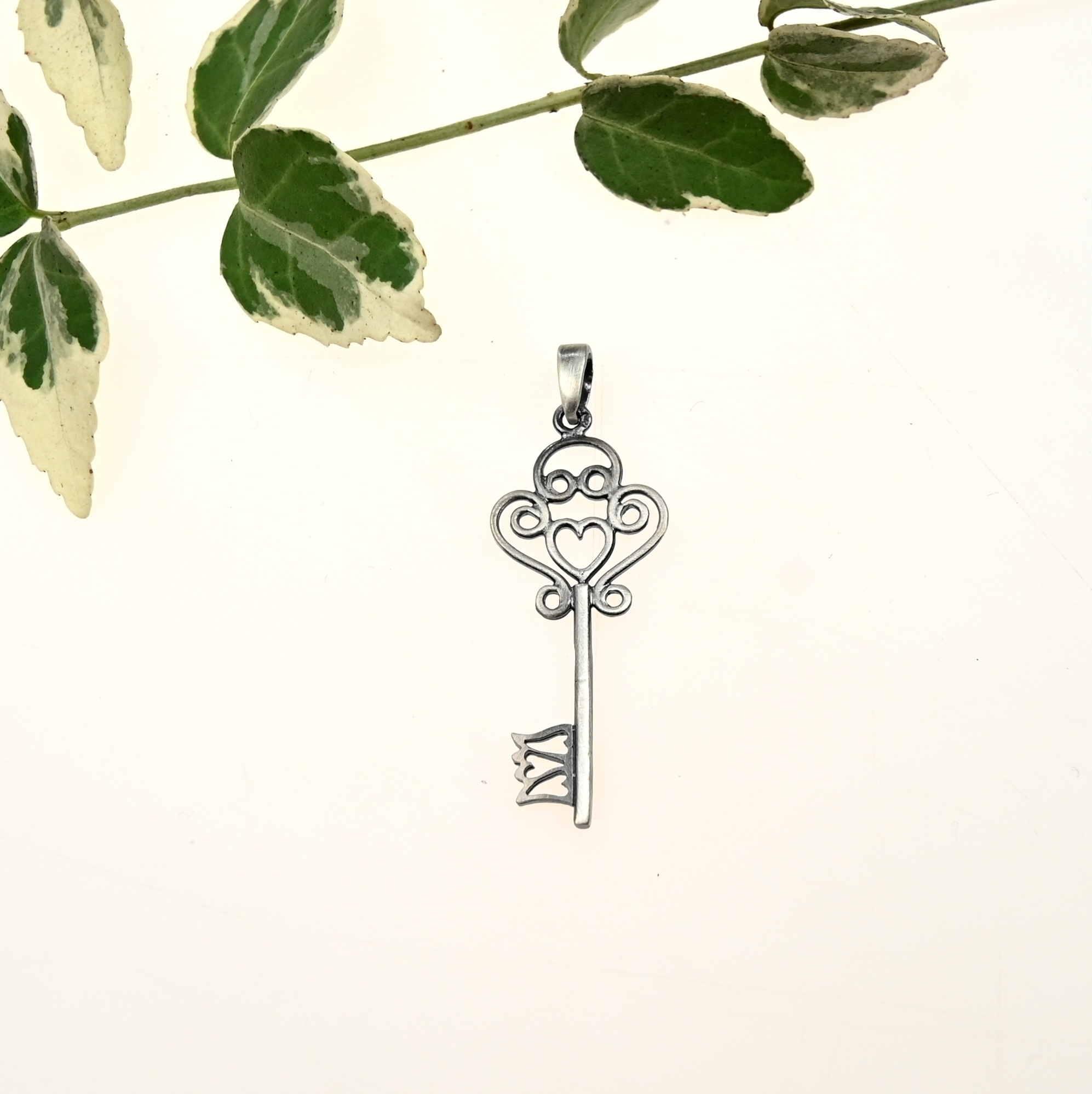 Ten niewielki srebrny wisiorek w kształcie kluczyka to biżuteria, która urzeka spokojem formy i głębią znaczeń. Wykonany ze srebra próby 925 i wykończony oksydą, zyskuje szlachetny, lekko przyciemniony odcień, który podkreśla detale i nadaje całości subtelnie nostalgiczny charakter. To ozdoba delikatna, a jednocześnie pełna symboliki, idealna dla osób, które lubią biżuterię z duszą.