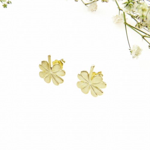 Kolczyki srebrne pozłacane – Koniczynka | Sztyft | Elegancki talizman szczęścia