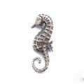 Urocza broszka srebrna w kształcie konika morskiego. Wykończona oksydą. Kolor: szary.