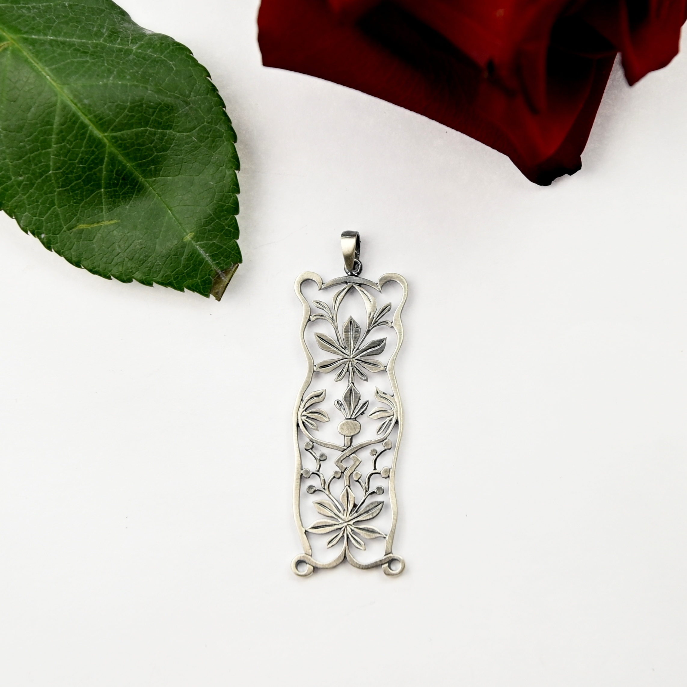 Misterna, delikatna zawieszka wykonana ze srebra, następnie zoksydowana i wypolerowana.