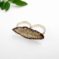 Pierścionek srebrny L7 – podwójny z listkiem, oksydowany
