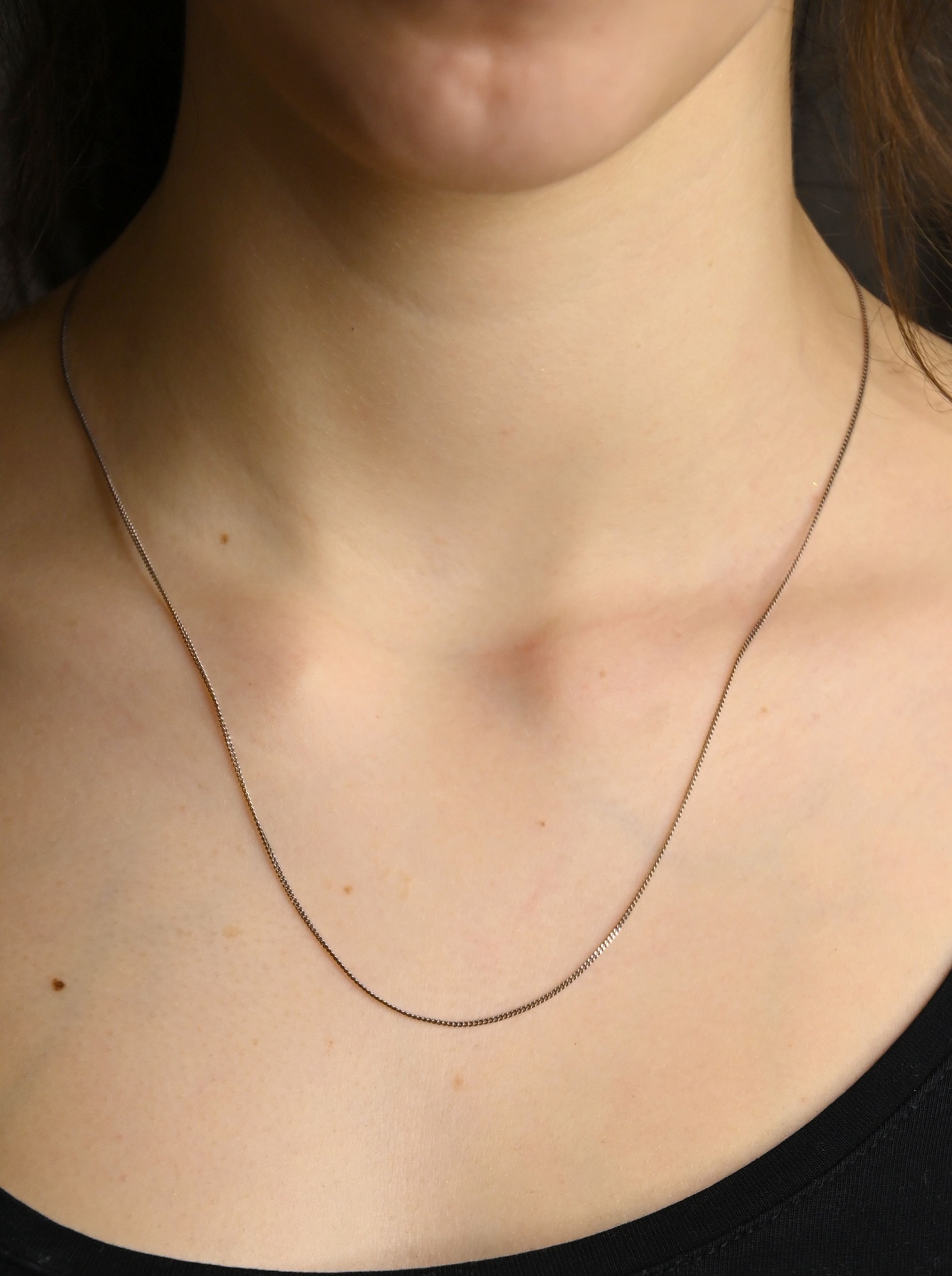 Łańcuszek ogniwkowy wykonany ze srebra próby 925, wykończony oksydą brązową.