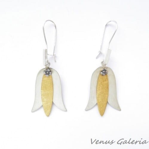 Przednia część została pozłocona, malutki kwiatuszek łączący dwa elementy został zoksydowany.