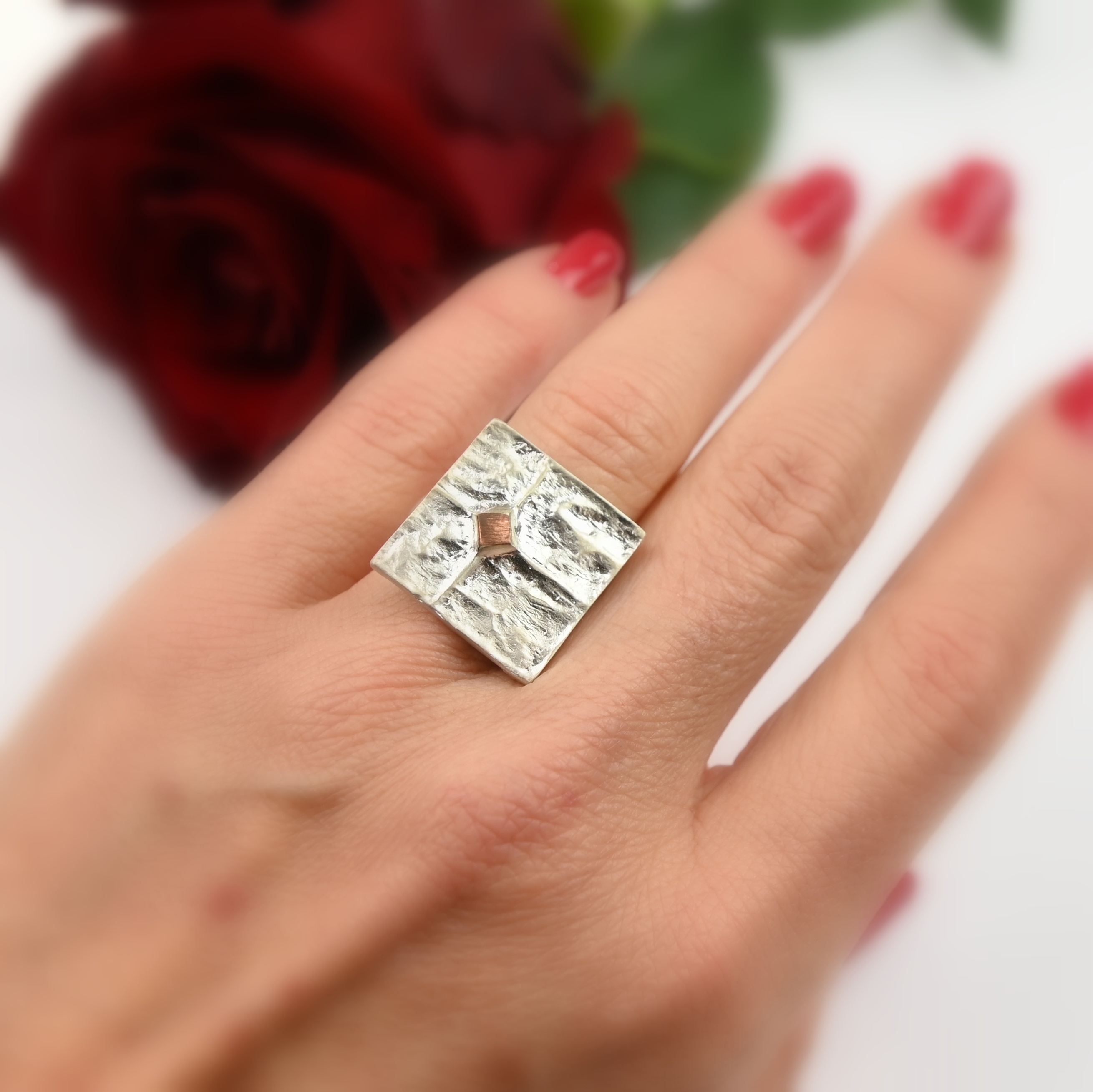 Pierścionek srebrny - Meteor biały