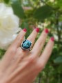 Ten srebrny pierścionek z turkmenitem to wyjątkowy dodatek, który doskonale podkreśli indywidualny styl, dodając mu nuty surowości i elegancji. Idealny dla osób ceniących sobie unikalną biżuterię, która łączy w sobie sztukę i naturę w jednym, harmonijnym dziele.