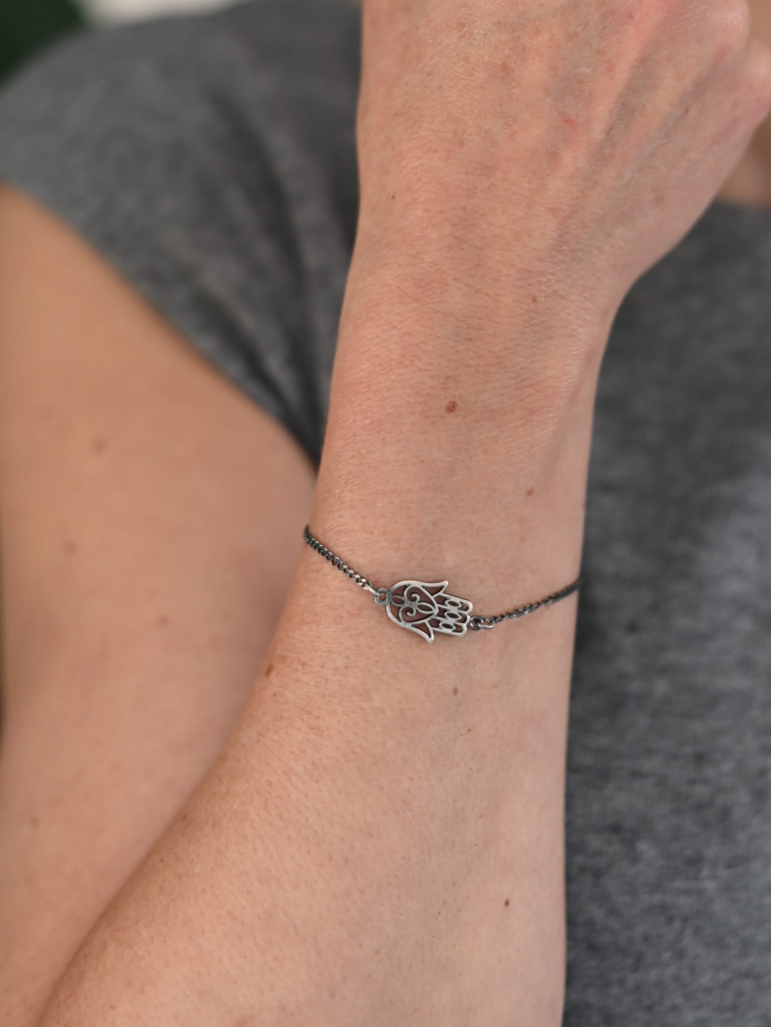 Bransoletka dla joginek z ręką Fatimy szara