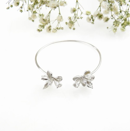 Wprowadź do swojej kolekcji biżuterii powiew baśniowej romantycznej poezji z naszą delikatną bransoletką ze srebra, ozdobioną dwoma małymi kwiatami magnolii. Ta niezwykle efektowna i romantyczna bransoletka jest doskonałym wyborem dla każdej kobiety ceniącej delikatność i elegancję.