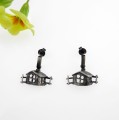 Artystycznie wykonane kolczyki srebrne w kształcie chatki.