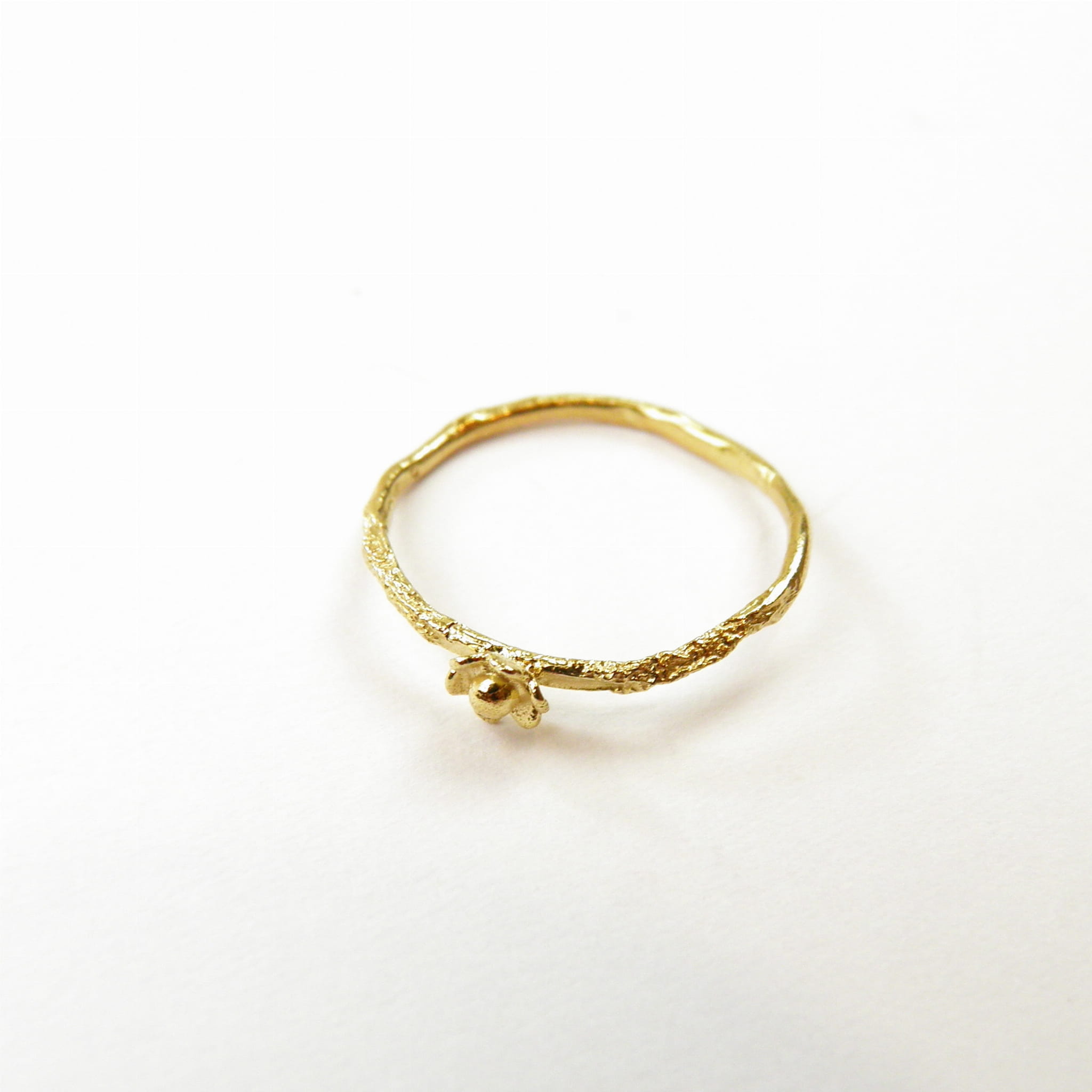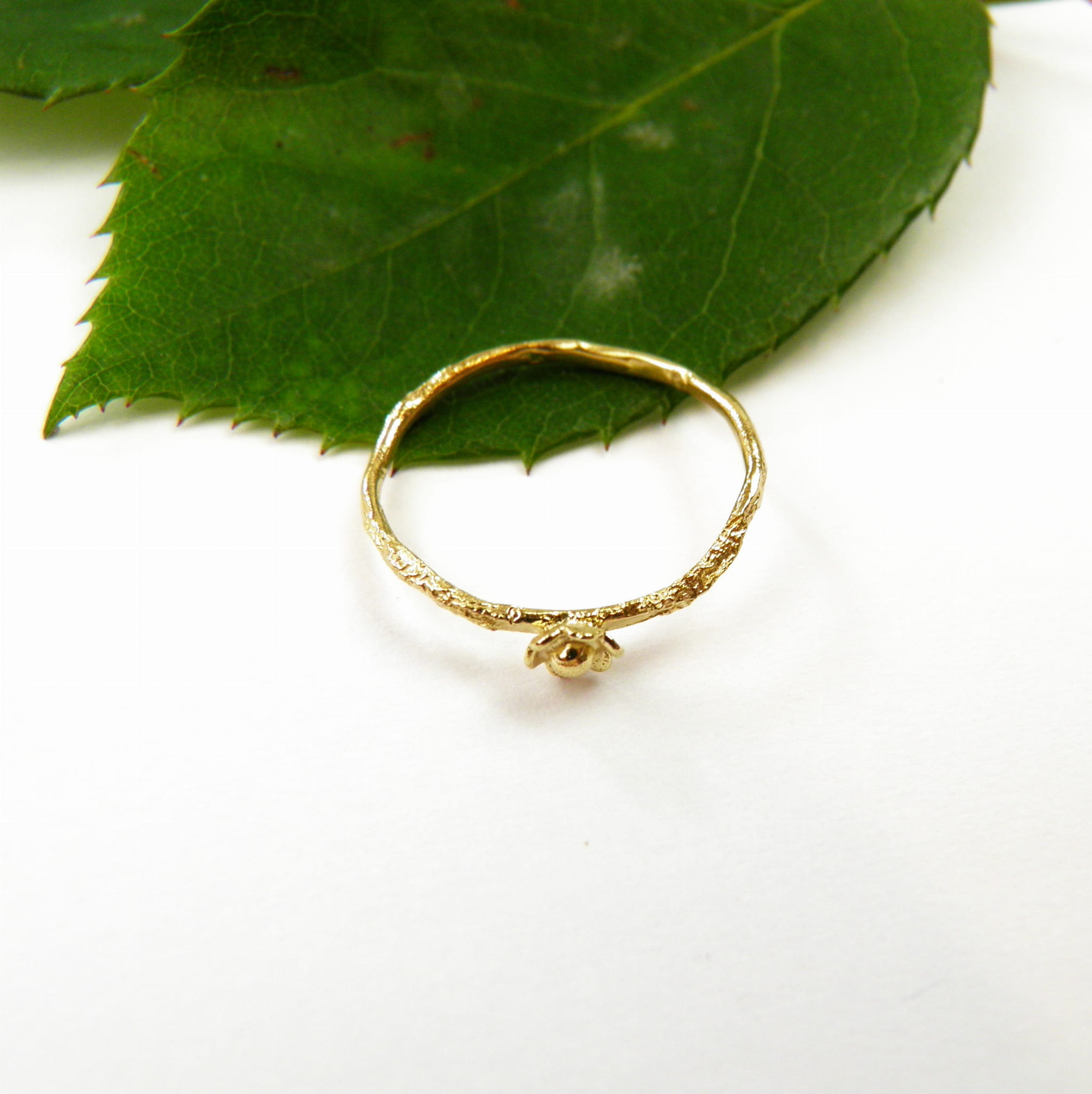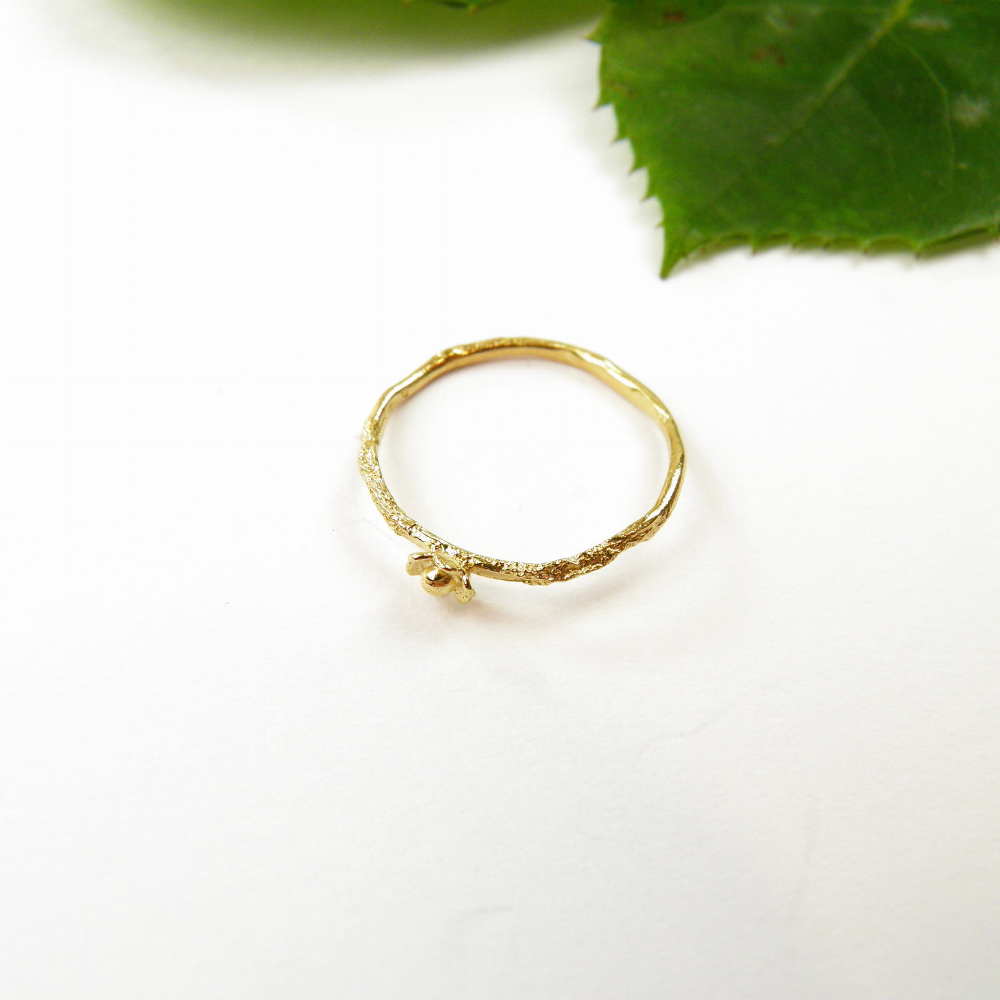 Na cienkiej, subtelnej obrączce rozkwita maleńki kwiat, przypominający o ulotnym pięknie przyrody, które można zatrzymać na chwilę – tylko dla siebie.