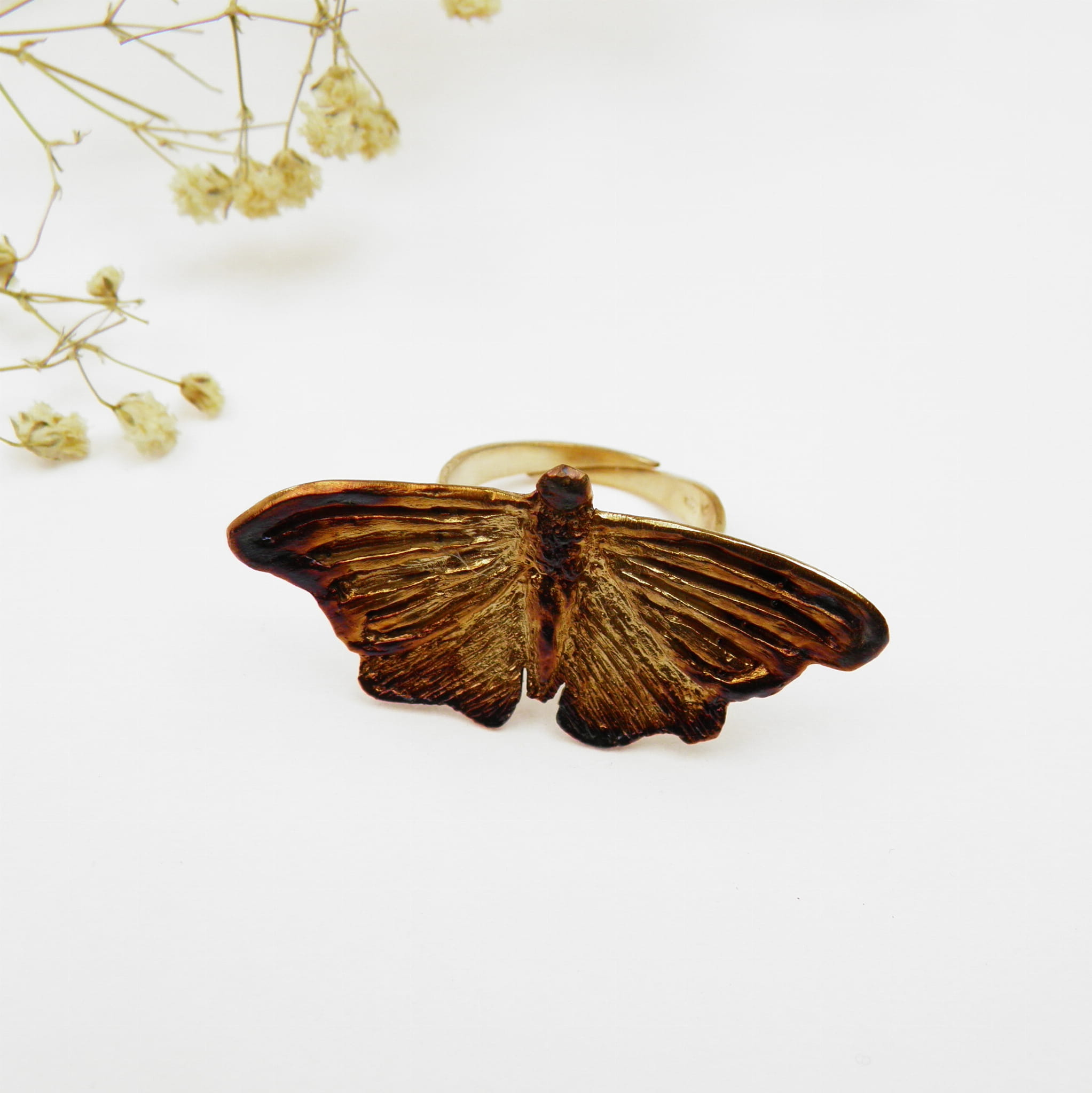 Pierścionek srebrny „Dusza Nocy” – ręcznie robiony pierścionek z ćmą, regulowany