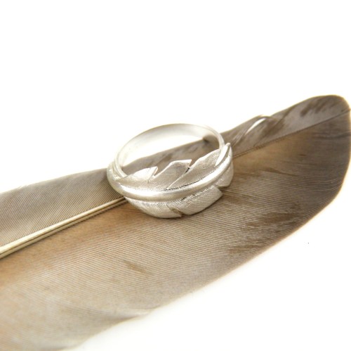 Wykonany ze srebra próby 925 pierścionek z małym piórkiem gładkim.