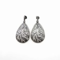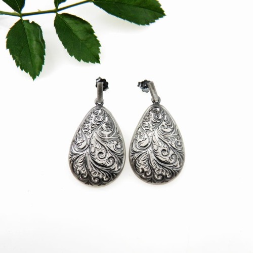 Kolczyki srebrne - Ornamentowa łezka na sztyftach