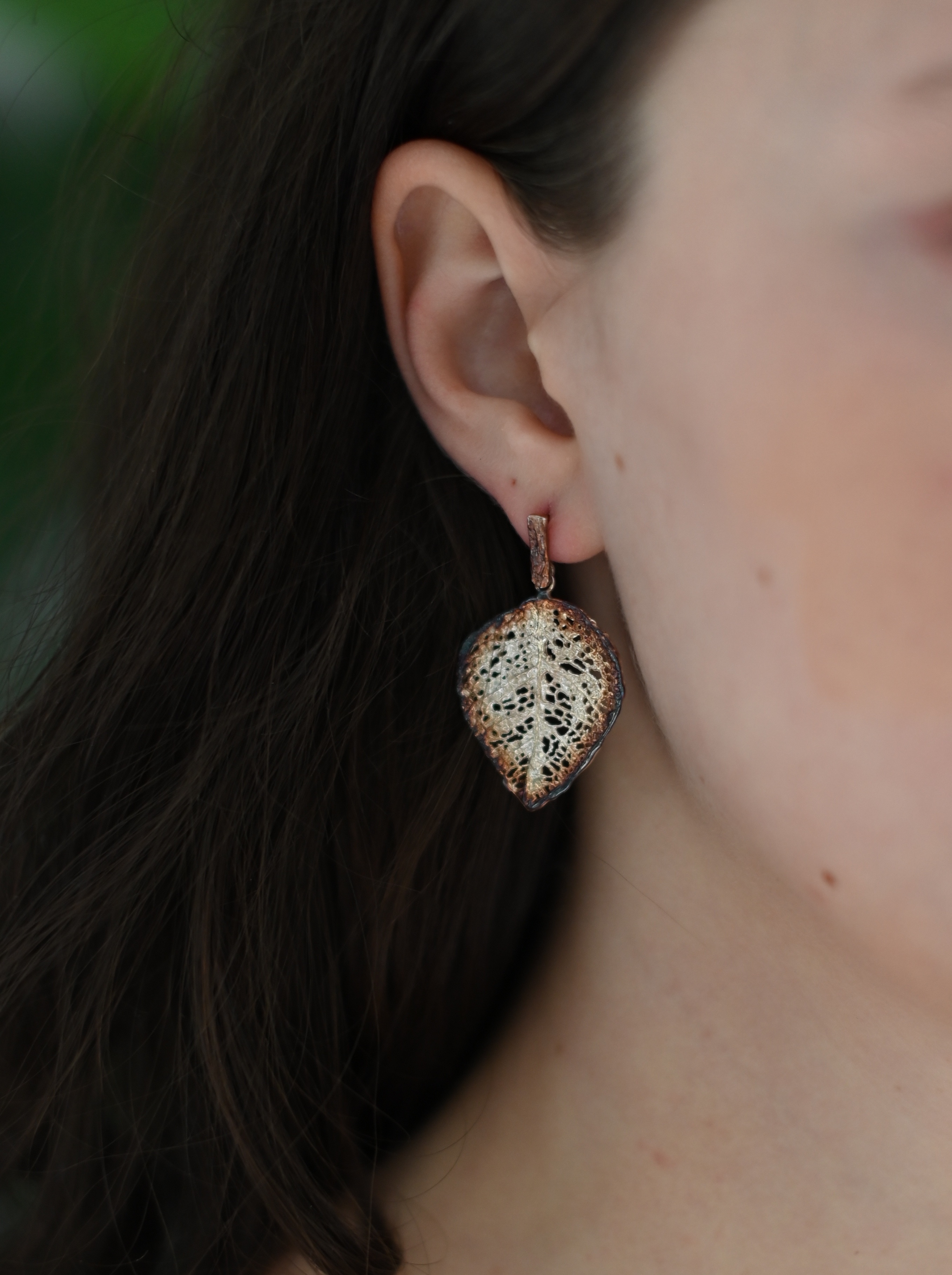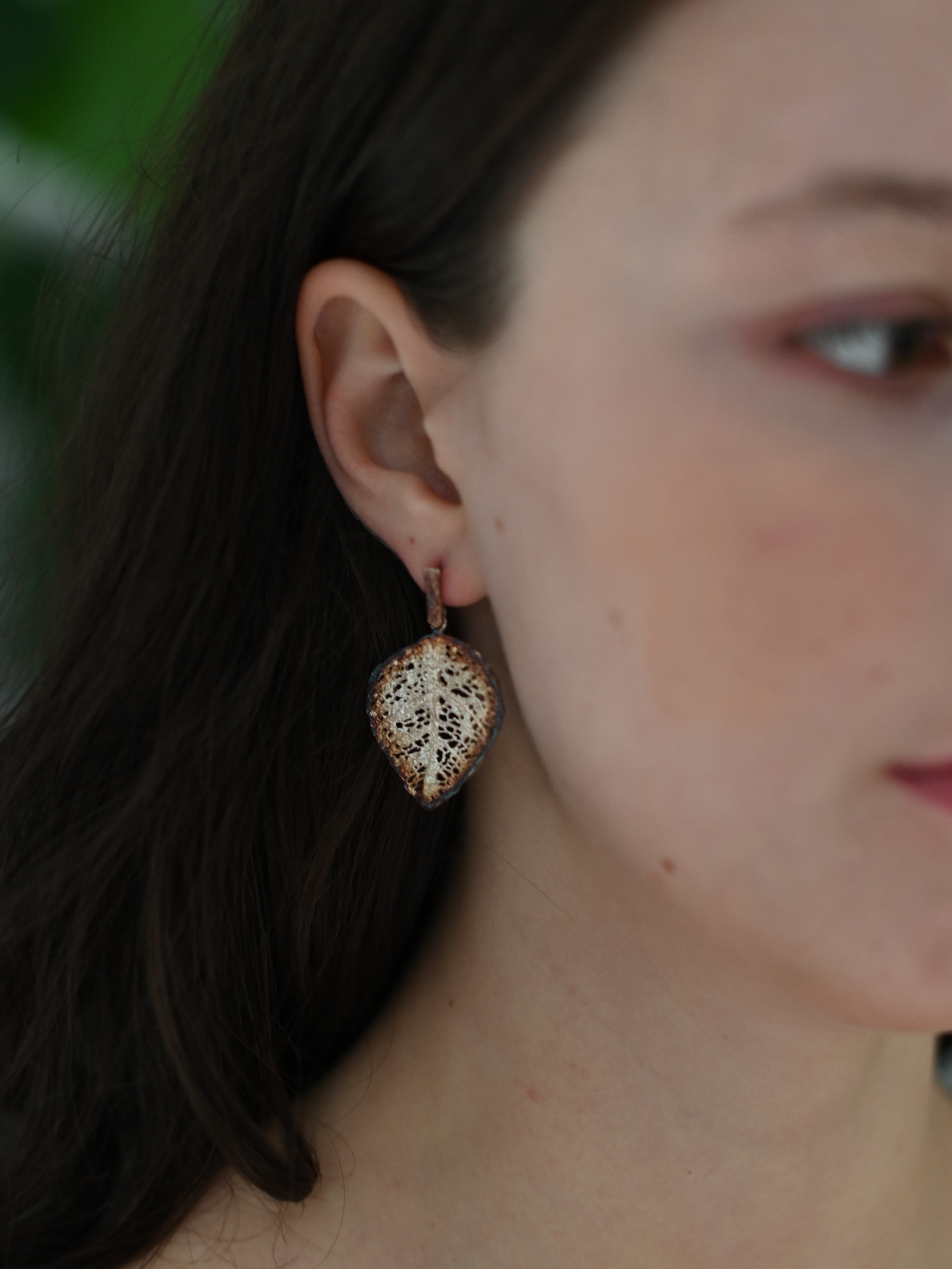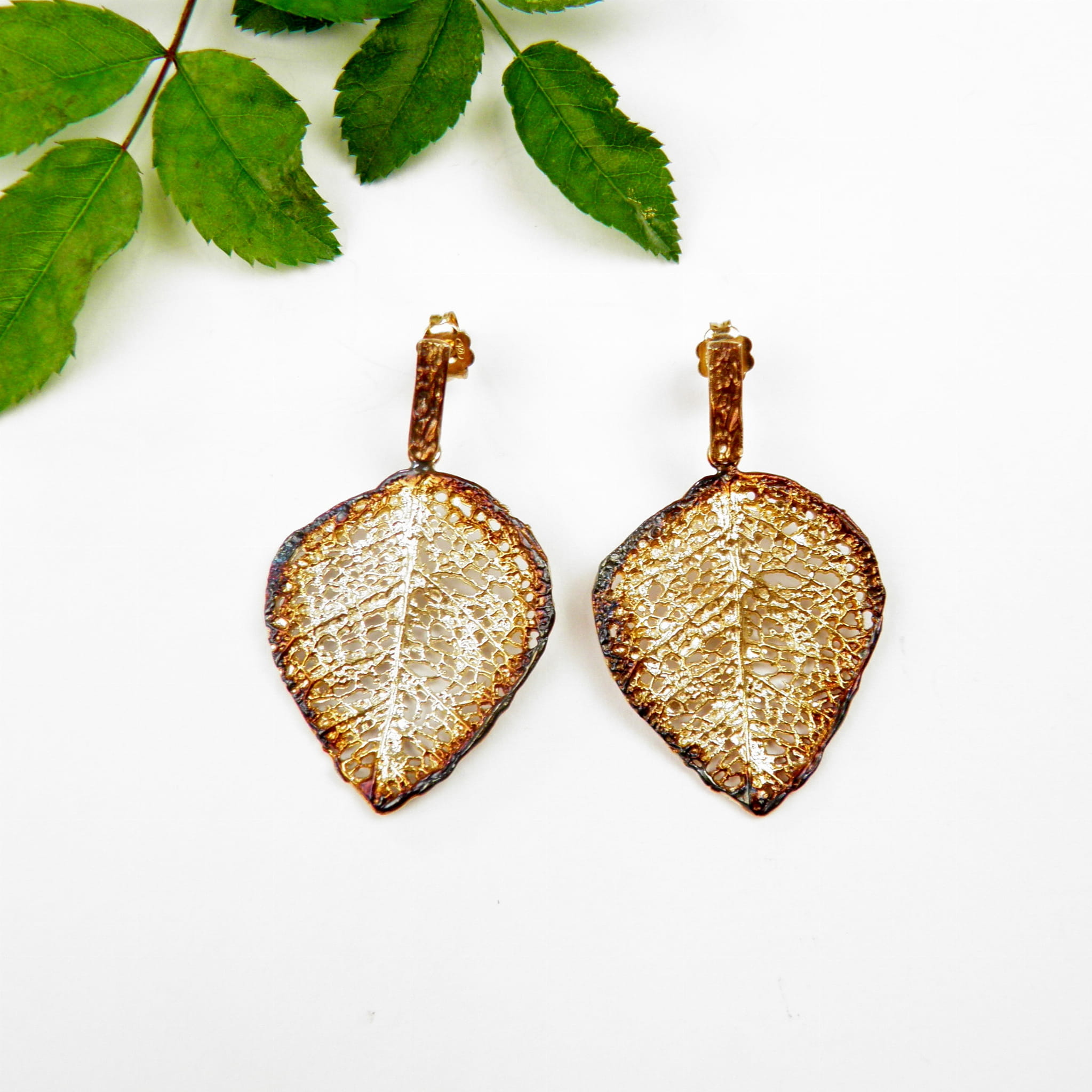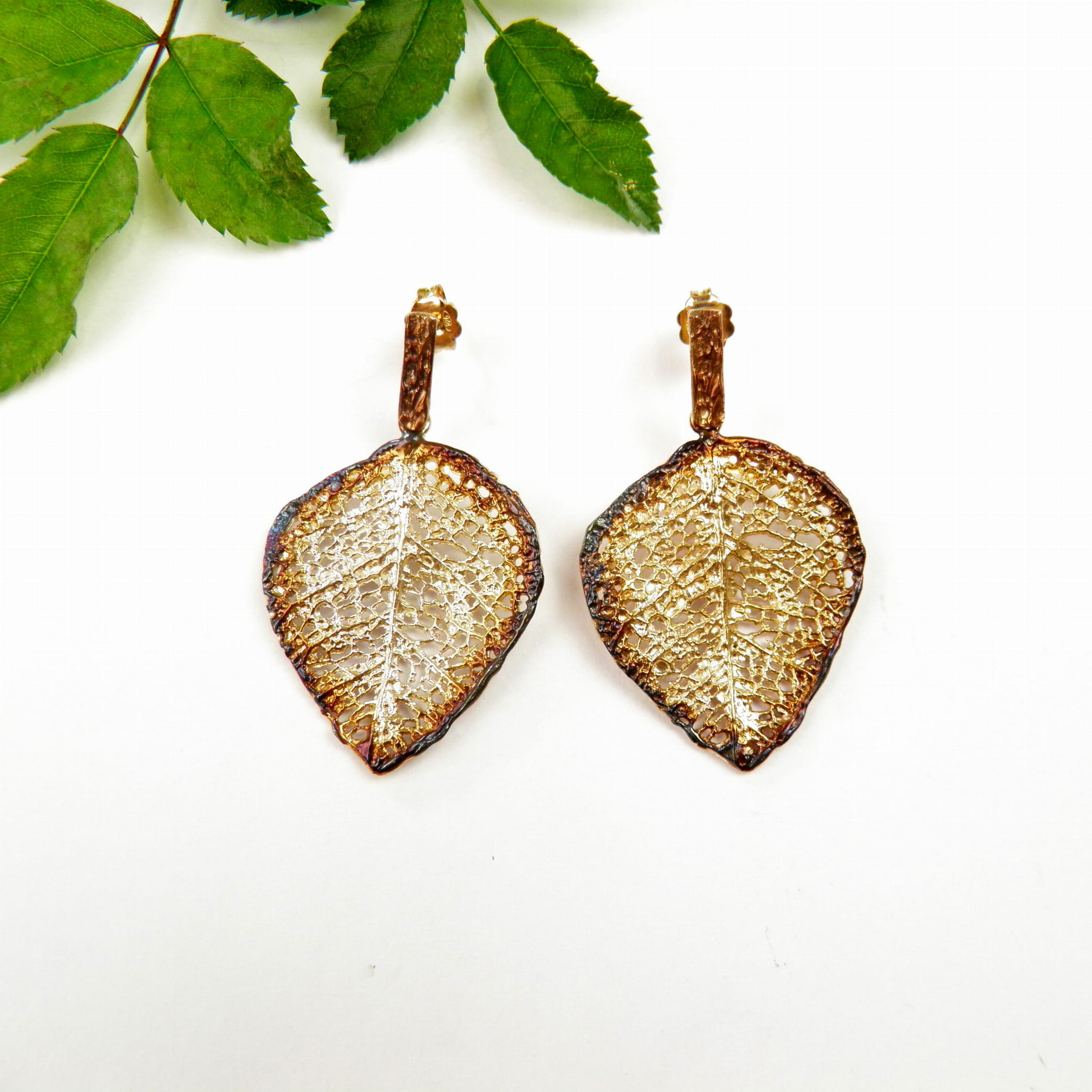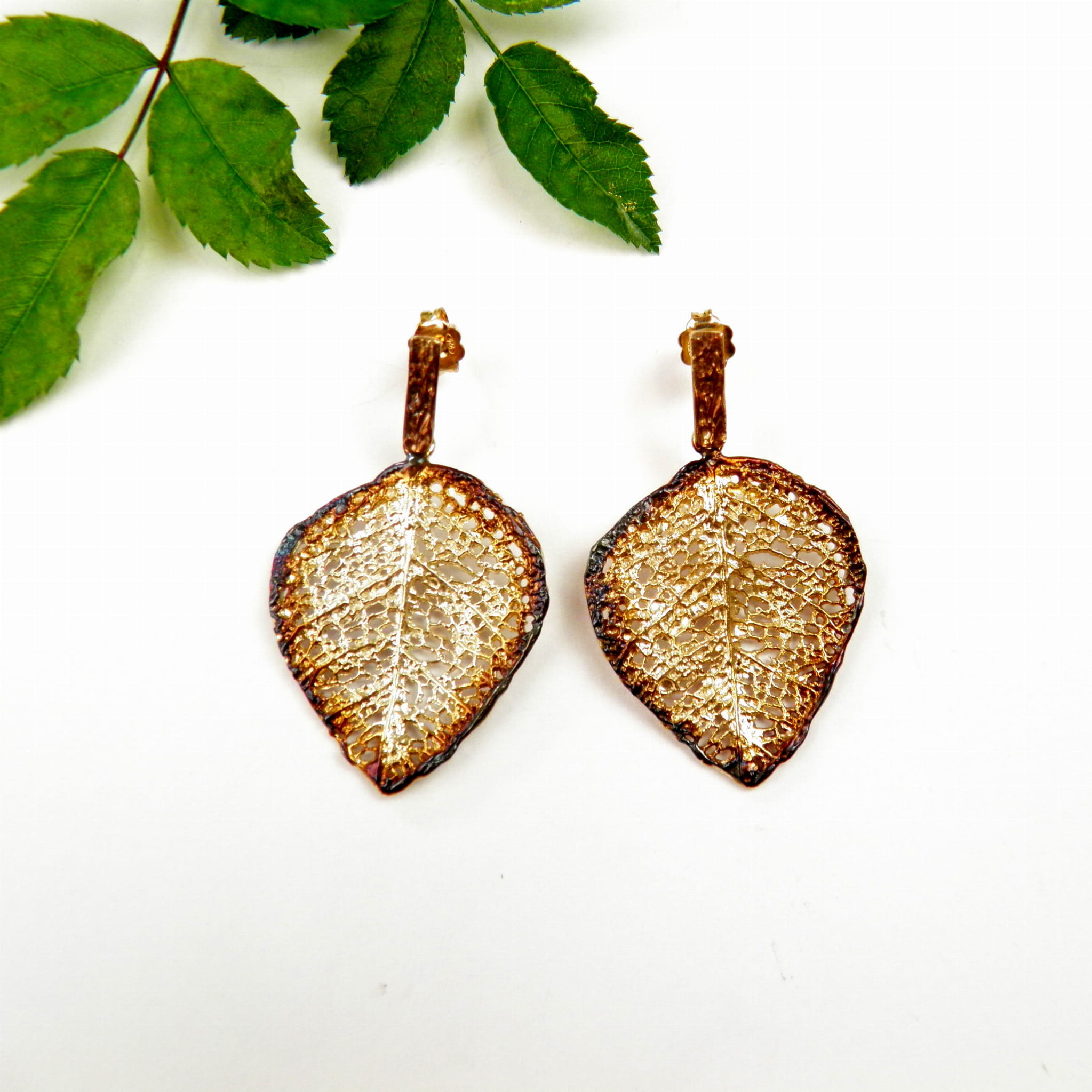 Kolczyki srebrne „Liście L12” – Złoto-brązowa poezja jesieni
