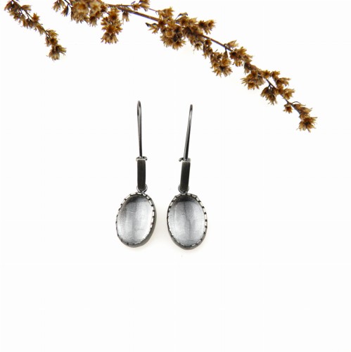Kolczyki wykończone oksydą w kolorze grafitowym.