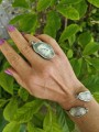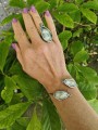 Bransoletka posiada dwa zegary o wymiarach 3,3 cm na 1,5 cm, które pięknie zdobią nadgarstek. Całość waży 9 gramów, co czyni ją wygodną do noszenia przez cały dzień.