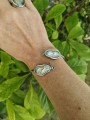 Bransoletka jest otwarta, co pozwala na łatwe dopasowanie jej do grubości nadgarstka, zapewniając komfort i wygodę noszenia.