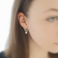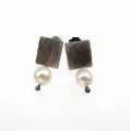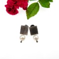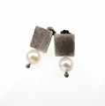 Kolczyki wykonane ze srebra w kształcie prostokątów z zawieszoną ruchomo białą perłą naturalną.