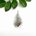 Pawie piórko szare duże - wisiorek srebrny