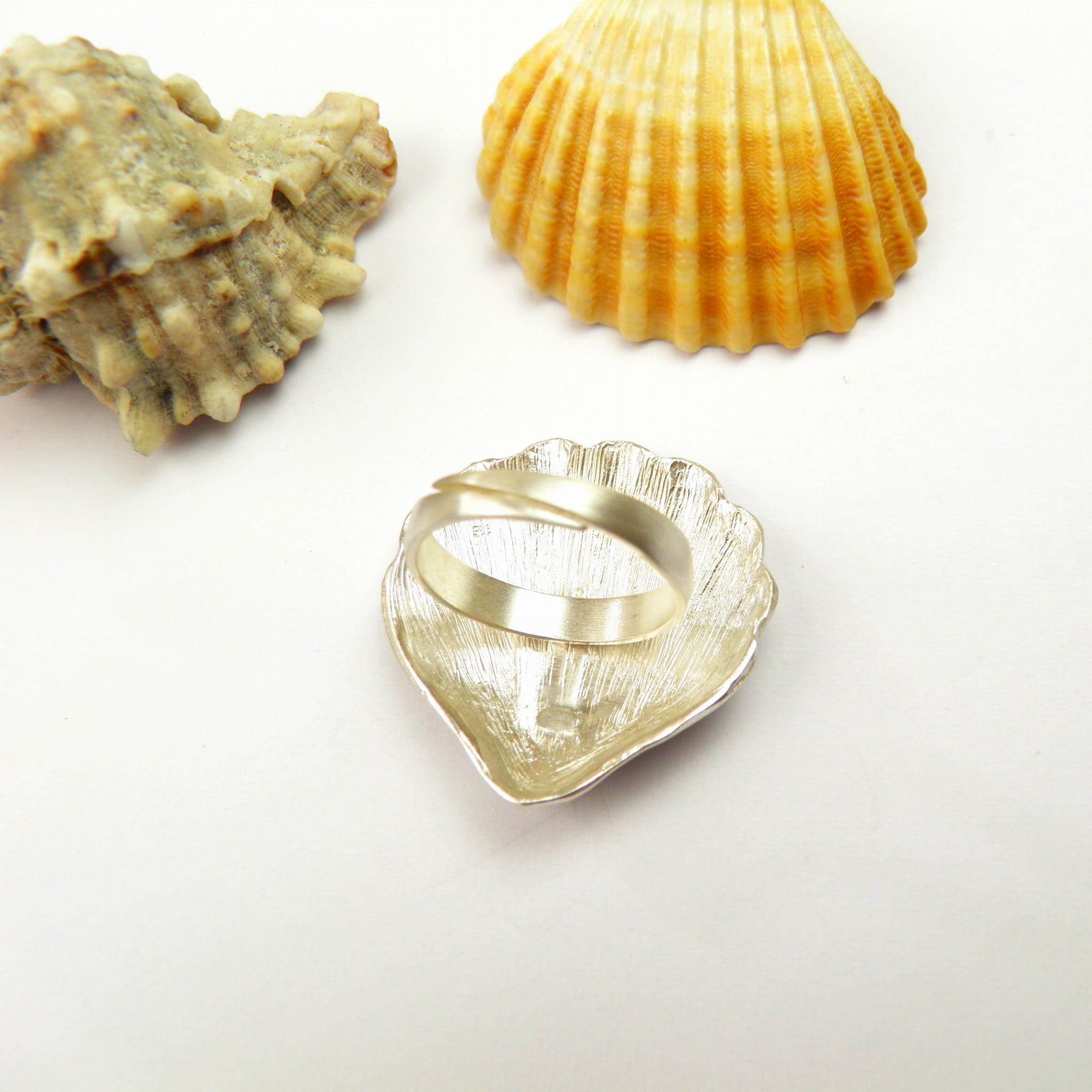 Biżuteria, która niesie więcej niż tylko piękno – pierścionek z dużą białą muszlą to manifest siły natury, wewnętrznego spokoju i powrotu do siebie.