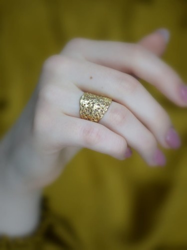 Niezwykle efektowny pierścionek w kształcie listka który oplata palca.