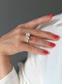 Jego regulowana obrączka, lekka i komfortowa, otula palec, dopasowując się do każdej dłoni z wdziękiem i delikatnością, niczym wspomnienie najpiękniejszych chwil.