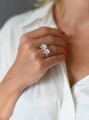 Wykonany ze srebra próby 925, pierścionek emanuje naturalnym pięknem i szlachetnością.
