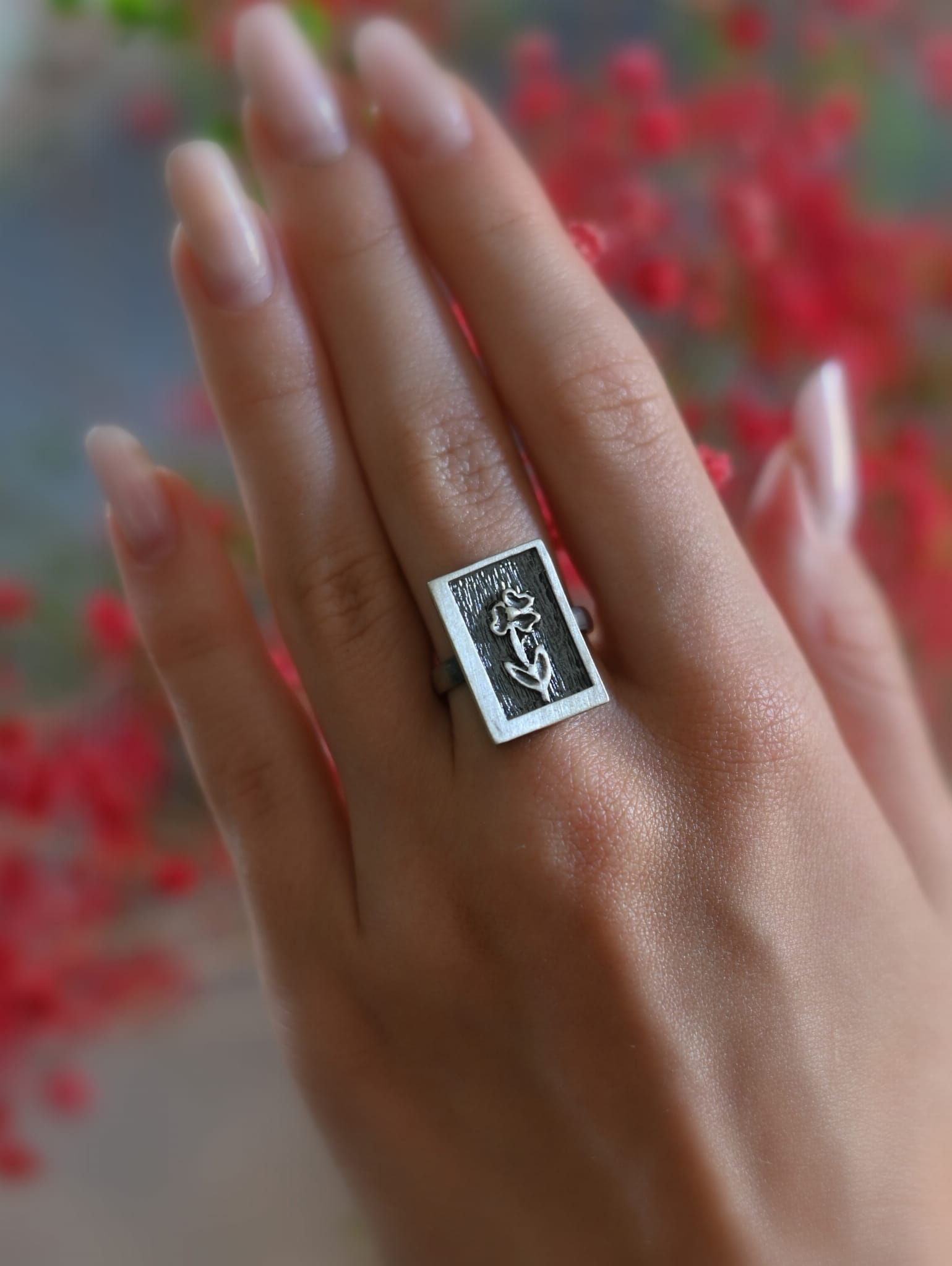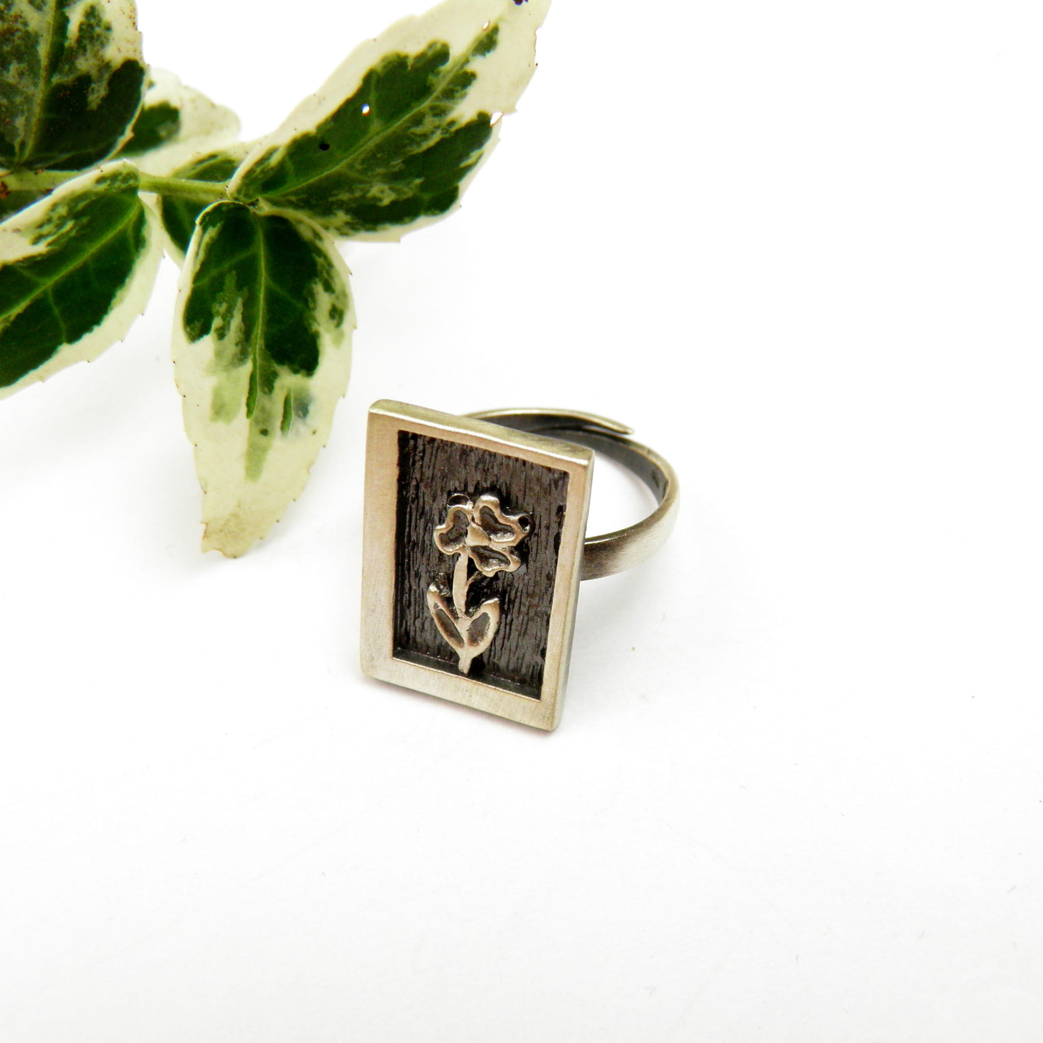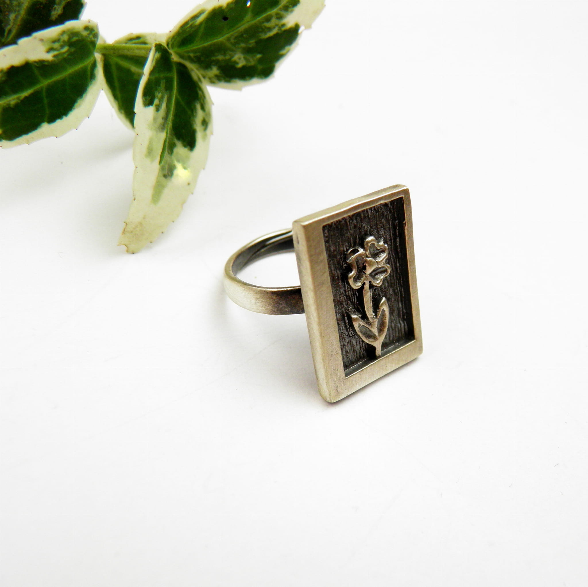 Pierścionek srebrny oksydowany – Polny kwiat II