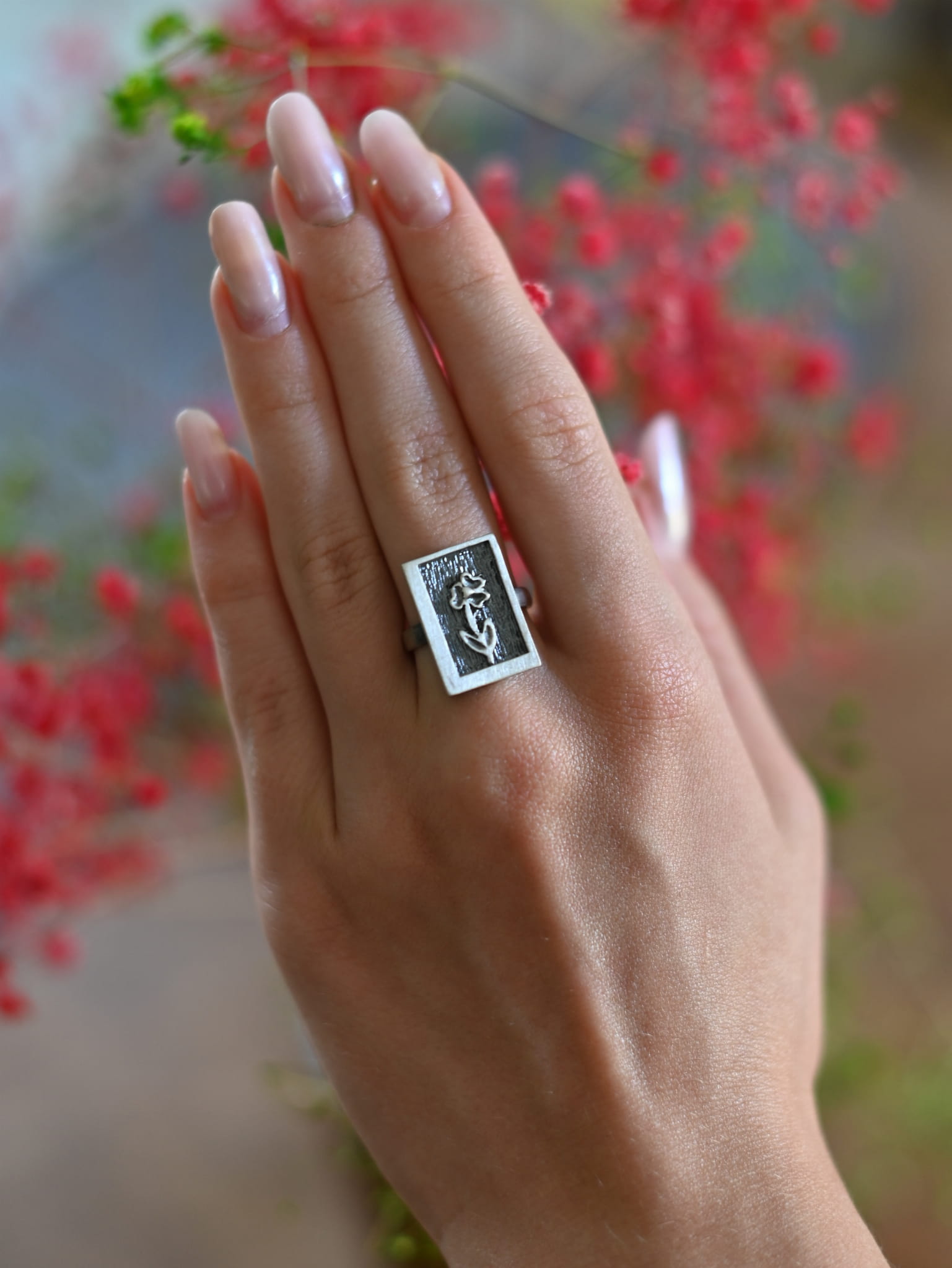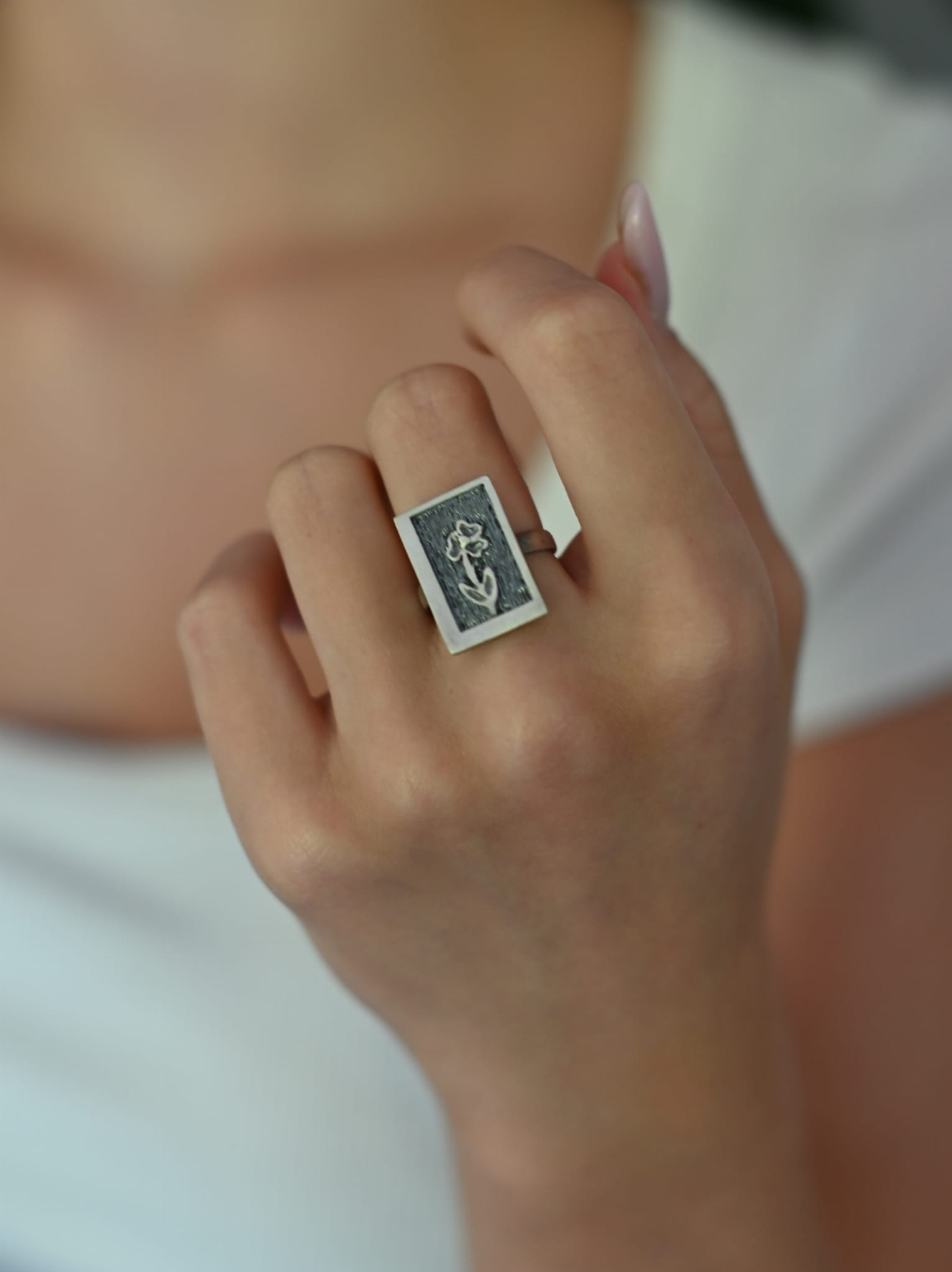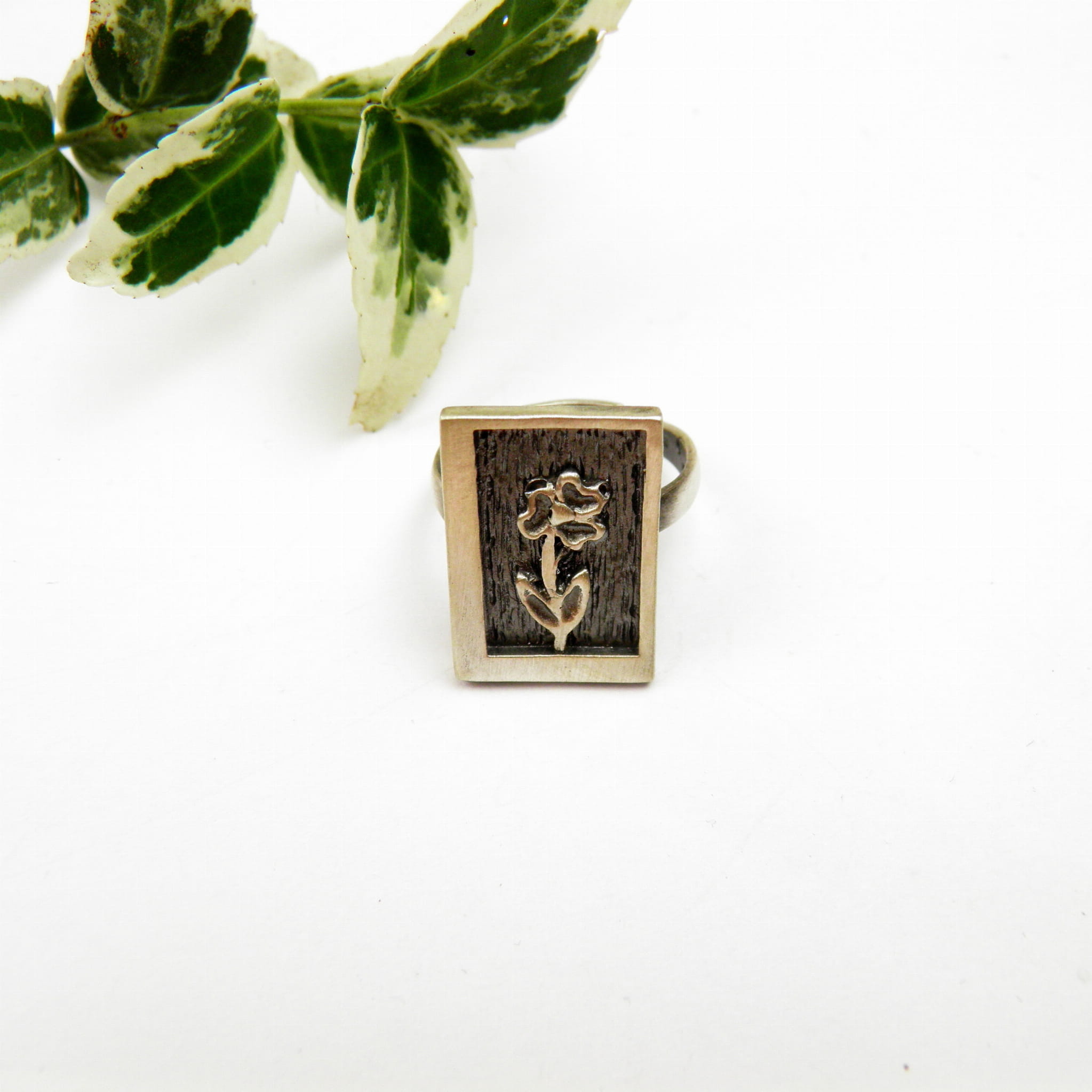 Pierścionek srebrny oksydowany- Polny kwiat II