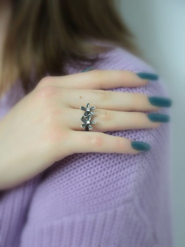 Pierścionek z dwoma szarymi kwiatuszkami - Subtell II