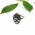 Zainspirowany kształtem szyszki, jego wymiary wynoszą 2 cm na 1,5 cm, co nadaje mu wyrazisty, ale nieprzesadzony charakter. Całość została starannie wykończona oksydą grafitową, co nadaje mu głębię oraz nowoczesny, elegancki wygląd. Dzięki regulowanej obrączce, pierścionek doskonale dopasowuje się do każdego palca, zapewniając komfort noszenia.
