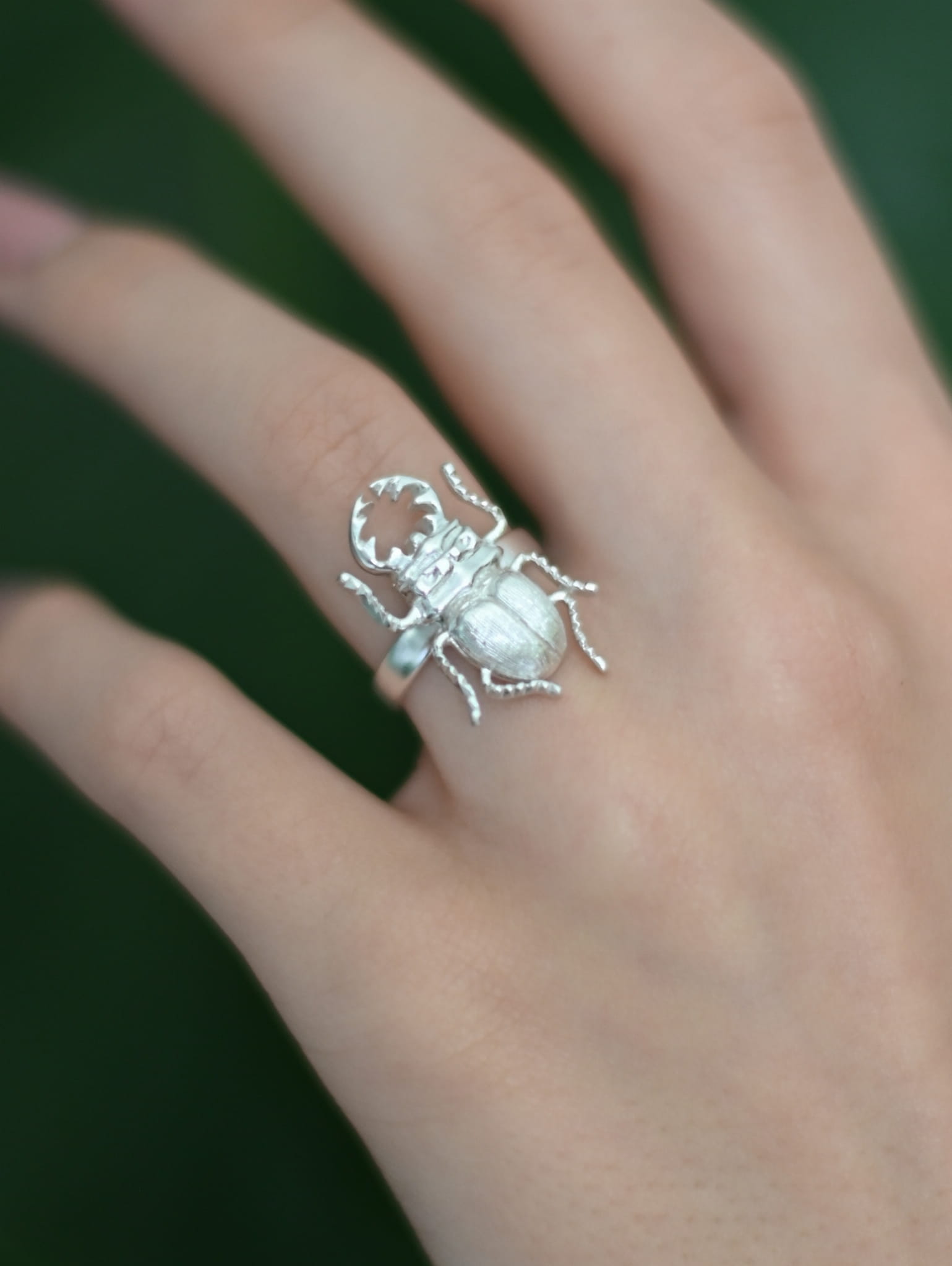 Pierścionek ze Skarabeuszem Białym - srebrna biżuteria