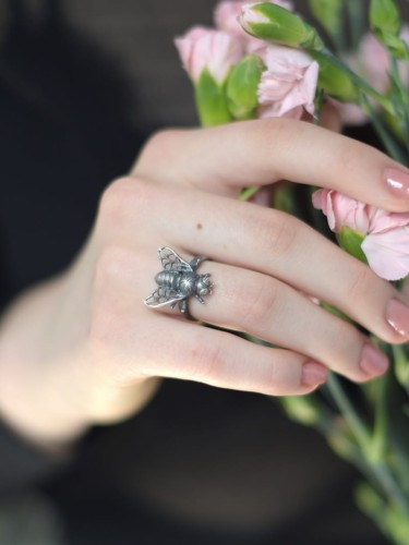 Wyjątkowy pierścionek srebrny z pszczołą na regulowanej obrączce.