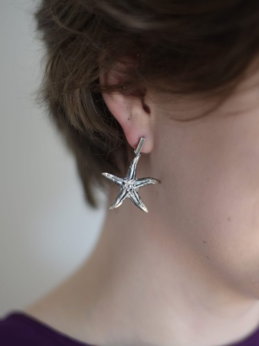 Kolczyki wykonane ze srebra w kształcie morskich rozgwiazd.