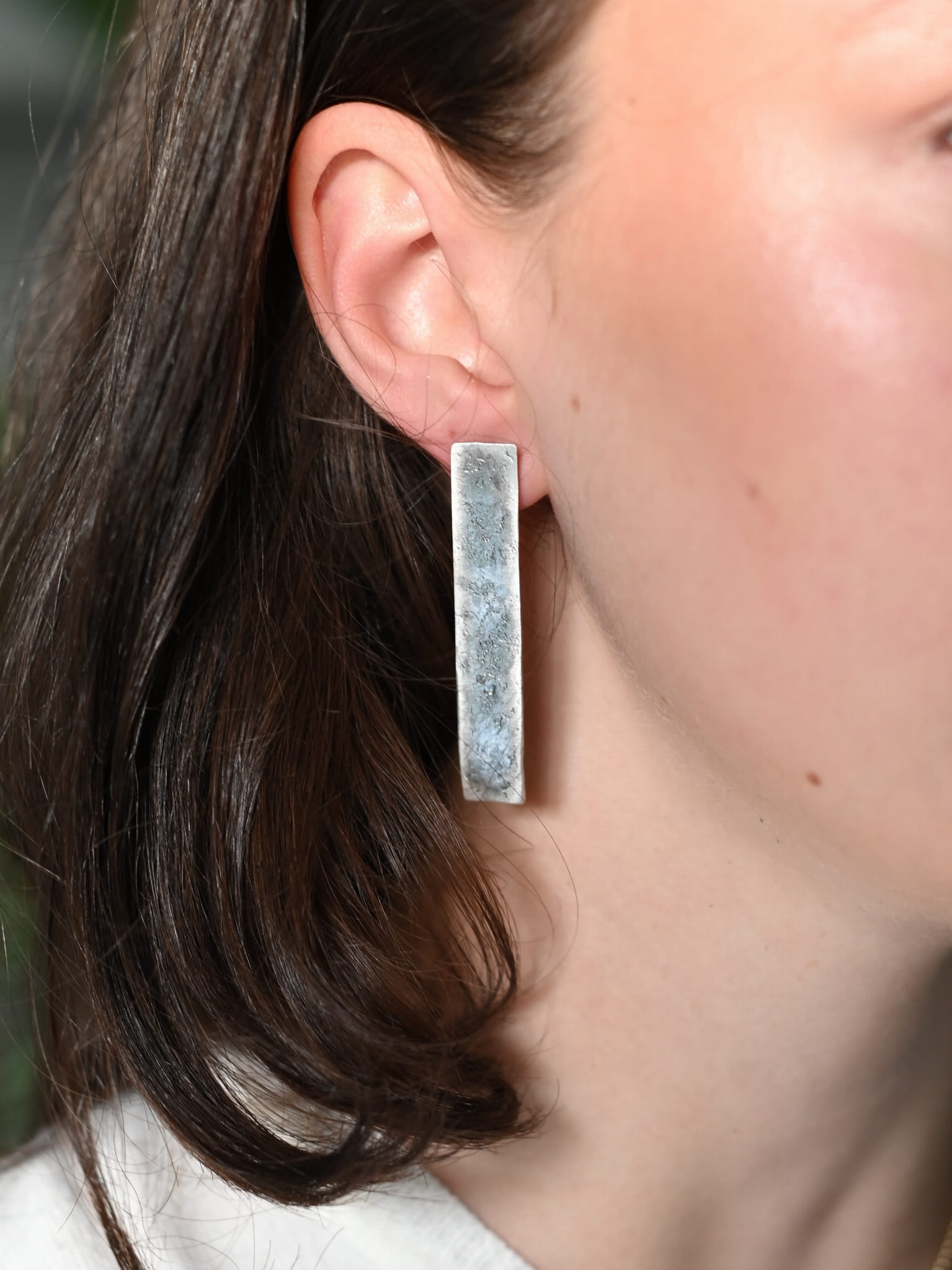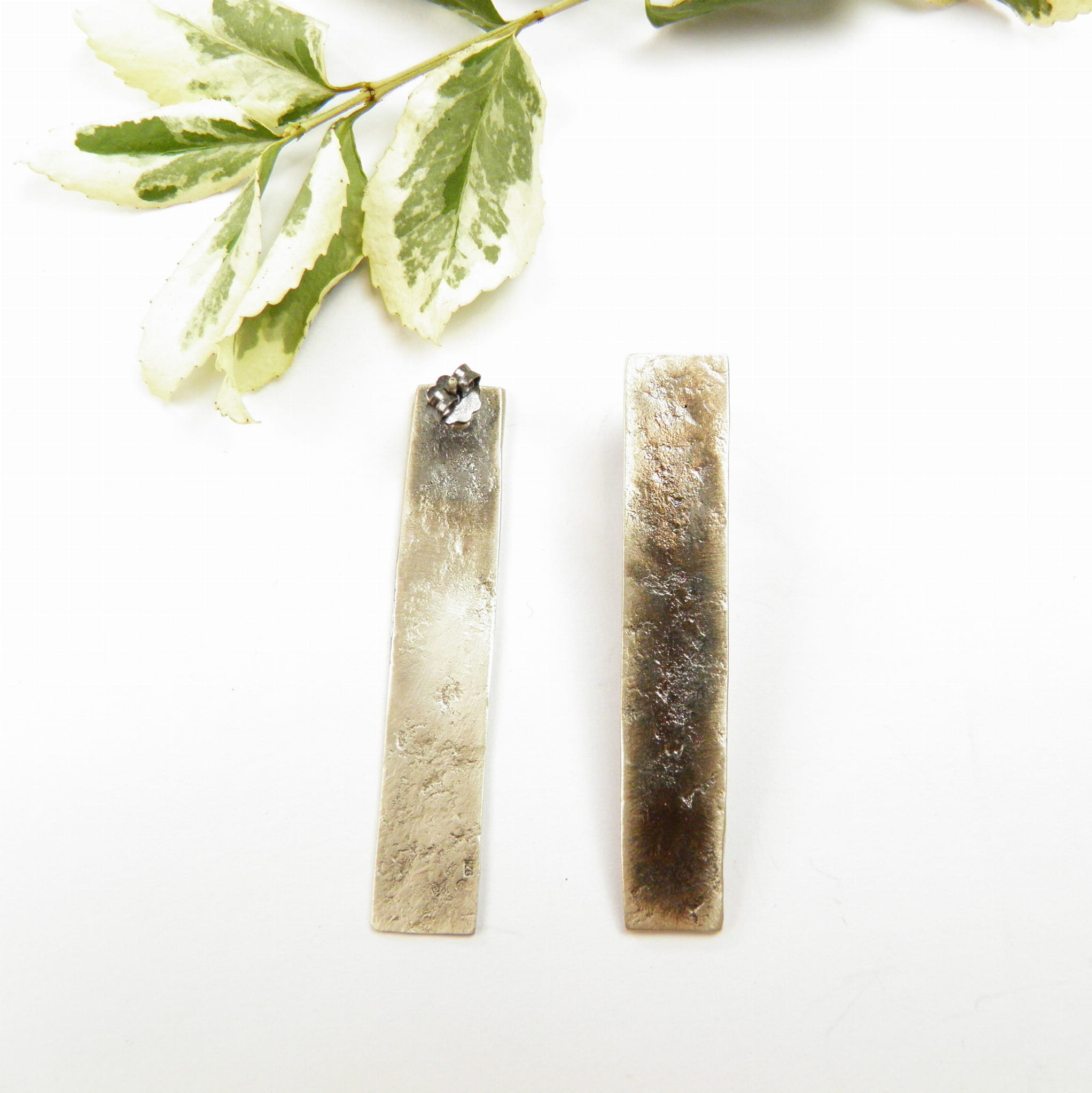 Skalne prostokąty na sztyftach III – kolczyki srebrne inspirowane naturą