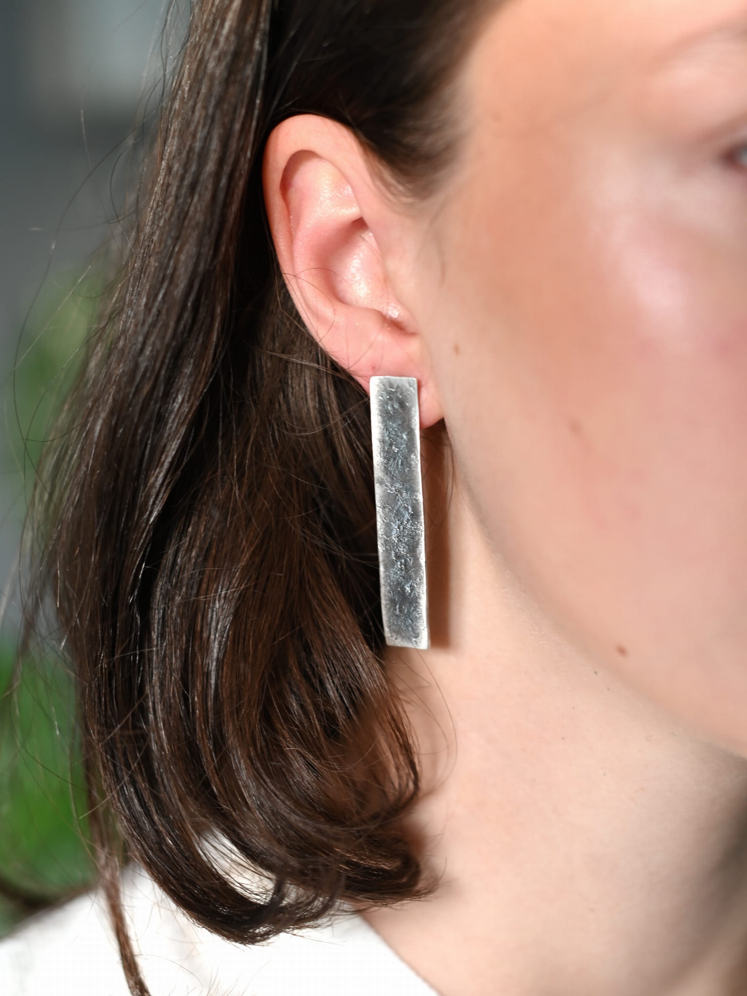 Zanurz się w surowym pięknie gór i skalnych struktur z kolczykami Skalne prostokąty III. Te ręcznie wykonane kolczyki srebrne to hołd dla siły natury i eleganckiej prostoty.