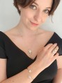 Zakończona maleńkimi dłońmi o wymiarach 1,5 cm na 1,3 cm, bransoletka "Czuły uścisk" przyciąga uwagę swoją finezyjnością i precyzją wykonania. Na jednej z dłoni znajduje się subtelny pierścionek ozdobiony białą cyrkonią, który dodaje blasku i elegancji, podkreślając wyjątkowy charakter tego dzieła.