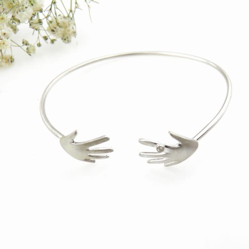 Srebrna bransoletka z dłońmi - Czuły uścisk