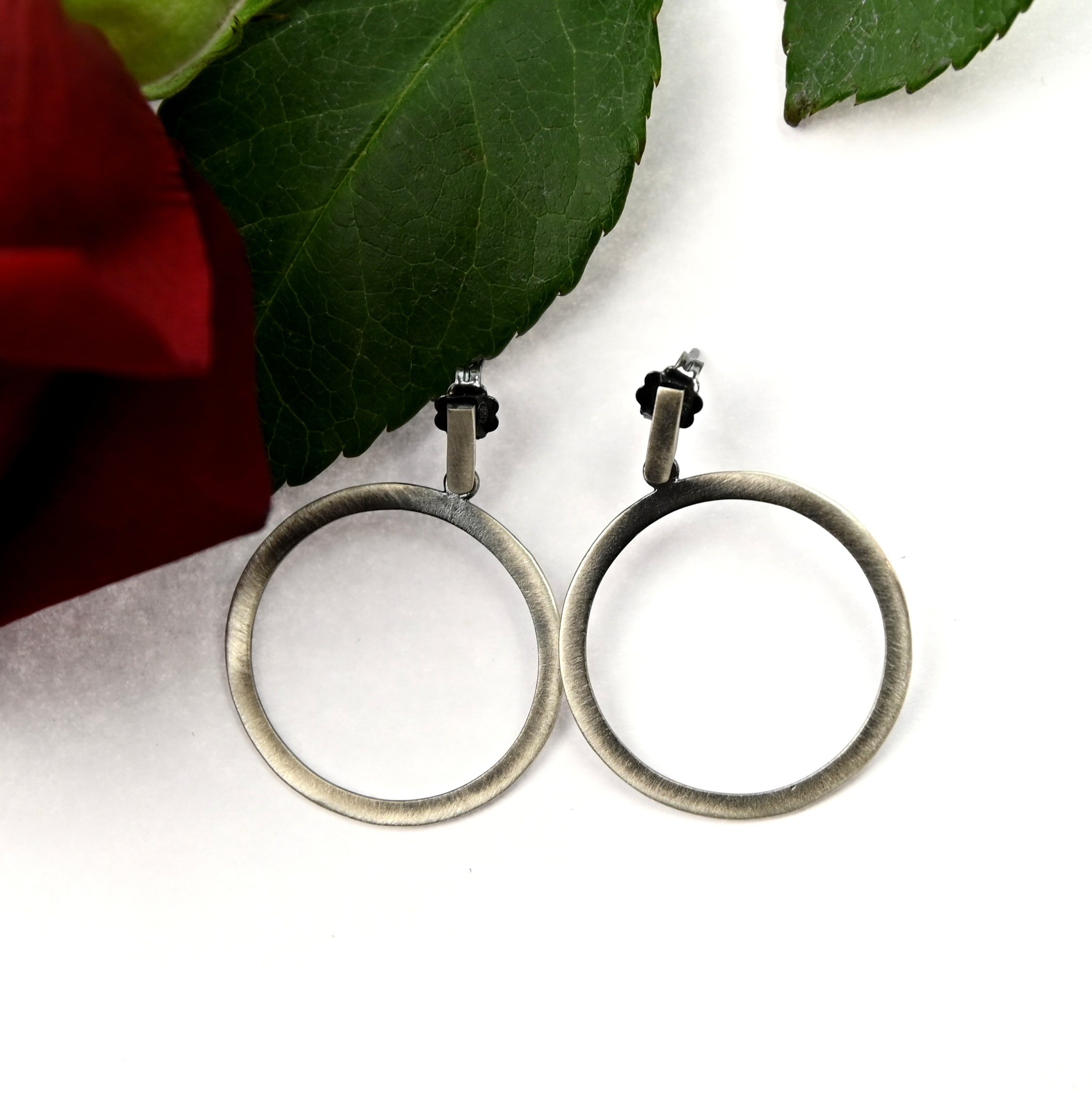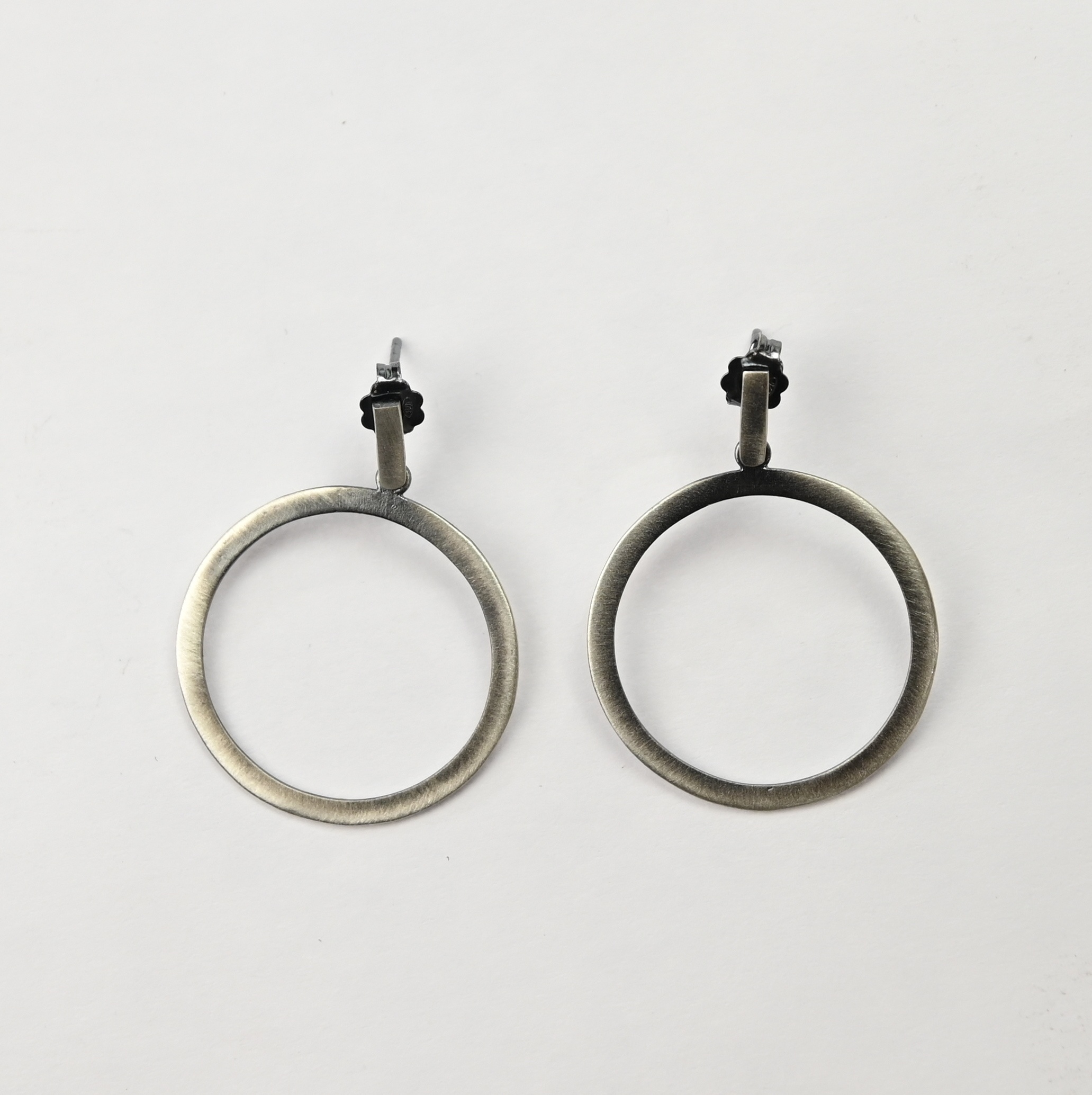 Szare Koła Duże – oksydowane kolczyki srebrne