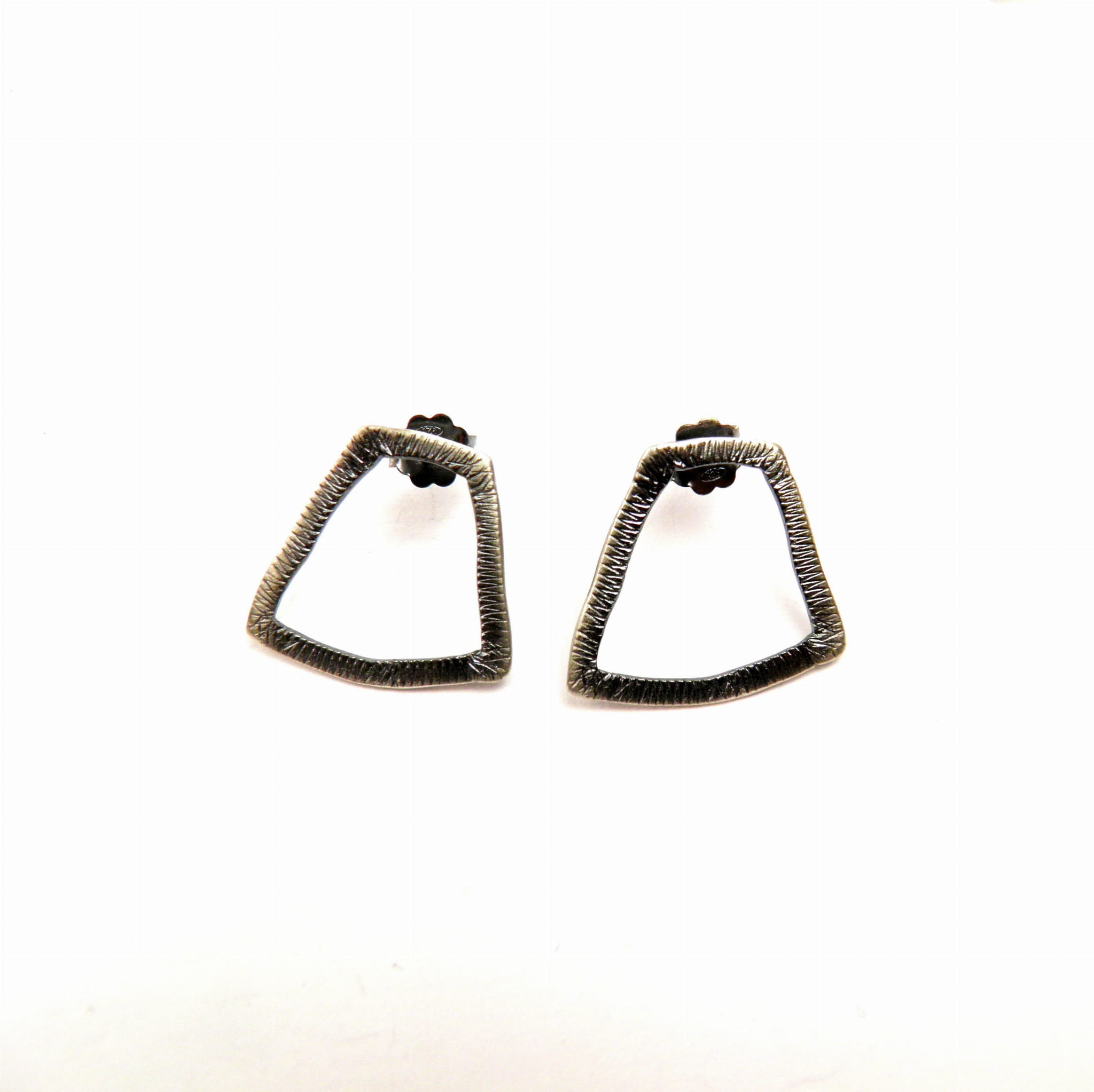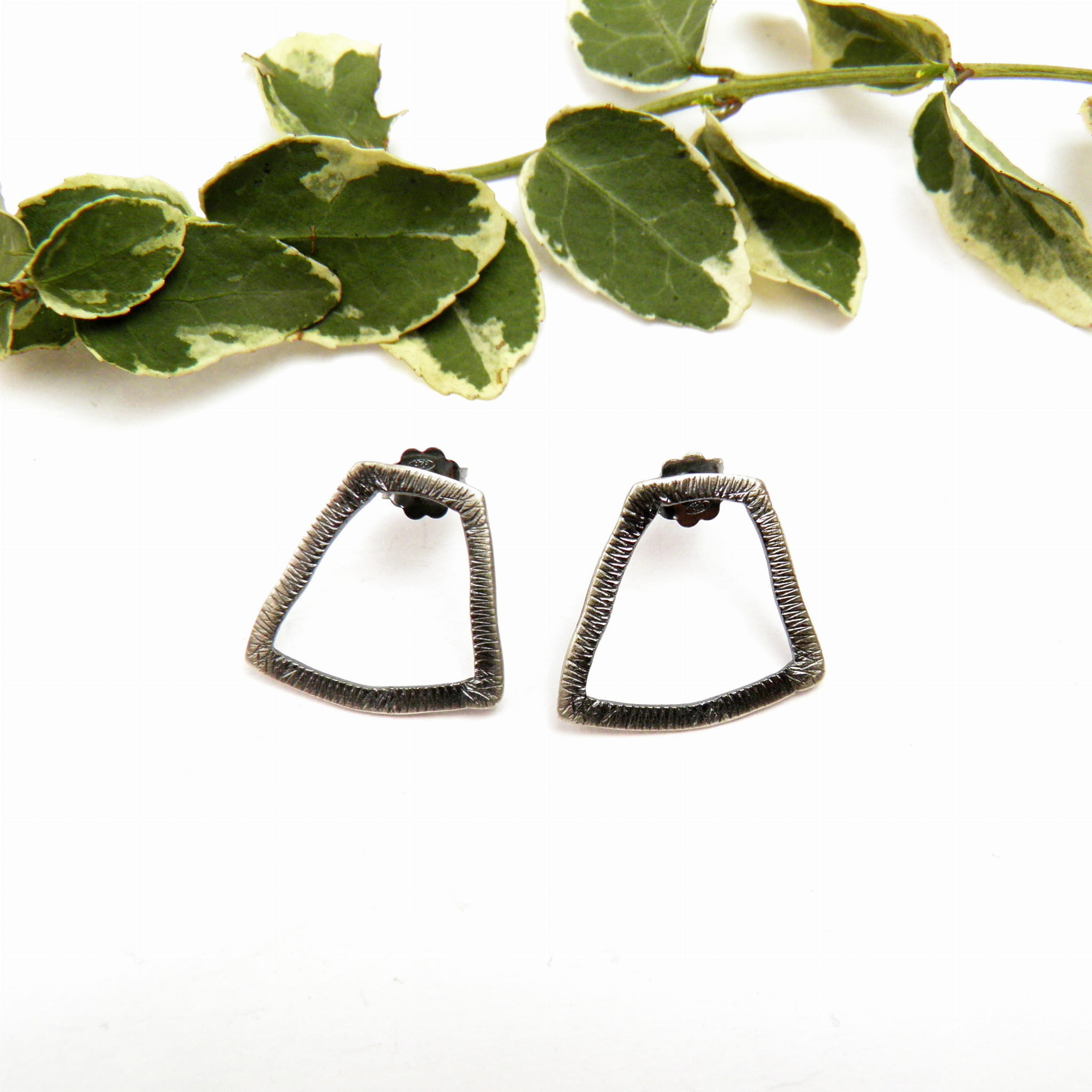 Te geometryczne kolczyki to kwintesencja minimalizmu i elegancji. Wykonane z srebra próby 925, pokryte oksydą w szarym odcieniu, zachwycają swoją subtelną, a zarazem wyrazistą formą. Ich trapezowy kształt dodaje im unikalnego charakteru, czyniąc je doskonałym dodatkiem zarówno na co dzień, jak i na wyjątkowe okazje.