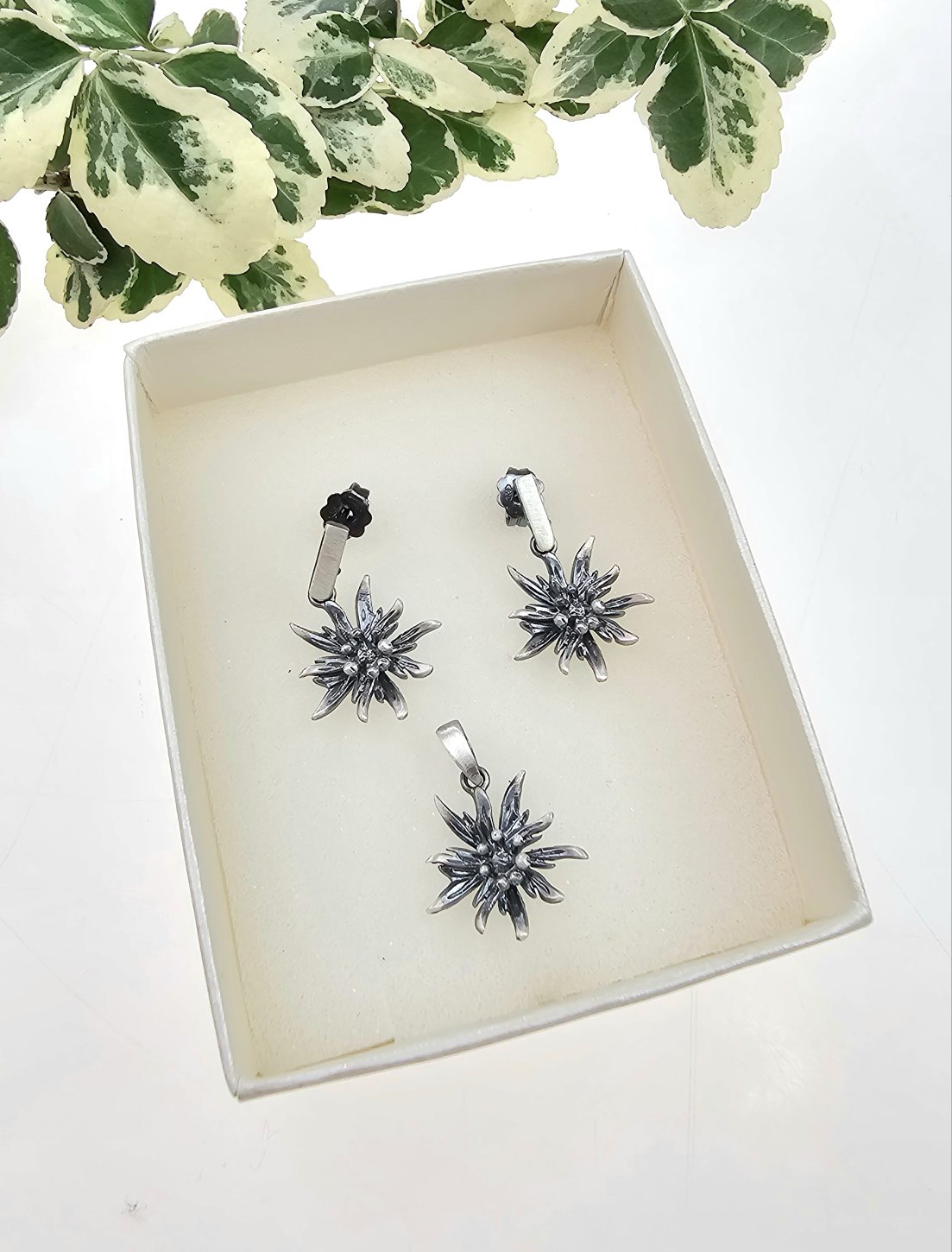 Subtelne kolczyki srebrne z motywem górskiej szarotki to delikatna biżuteria inspirowana naturą i pięknem wysokogórskich krajobrazów. Wykonane ze srebra próby 925 oraz wykończone oksydą w kolorze szarym, zachwycają artystycznym charakterem oraz starannie podkreślonym detalem płatków.