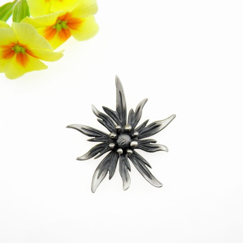 Szarotka szara - wisior duży z kwiatkiem - biżuteria artystyczna
