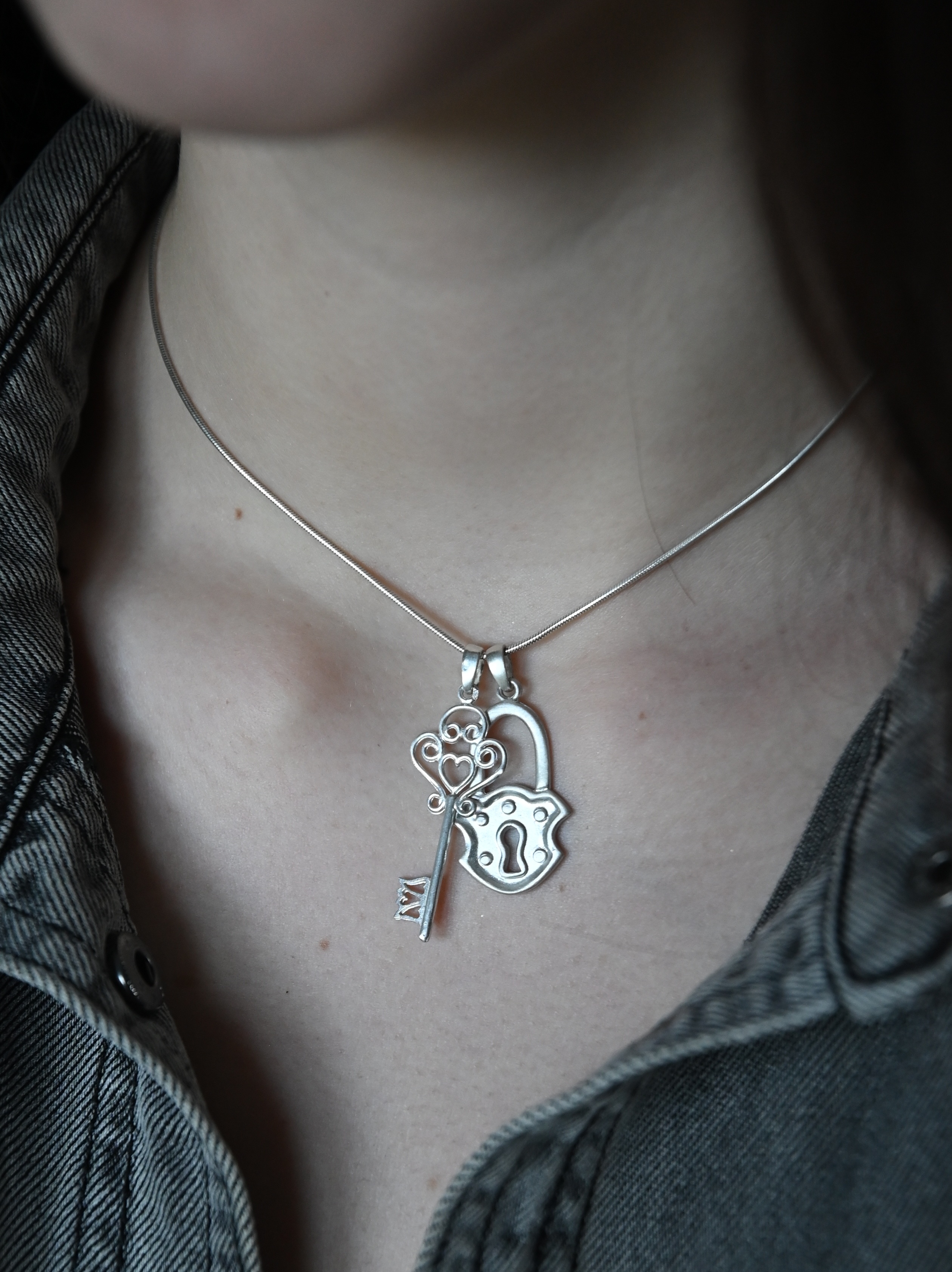 To srebrna zawieszka dla osób, które cenią minimalistyczną biżuterię z przesłaniem, a jednocześnie lubią dodatki z nutą uroku i swobody. Świetnie prezentuje się samodzielnie, ale może również tworzyć symboliczny komplet z zawieszką w kształcie klucza.