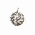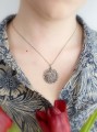 Piękny i wyrazisty wisiorek przedstawiający okrąg splecionych ze sobą listków.
